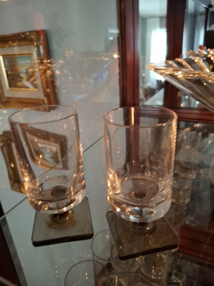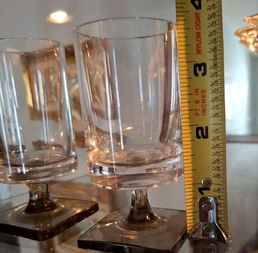 2 Linear smoke cordial glasses Rosenthal "LINEAR SMOKE" Studio Line cordial glasses. Excellent condition 3 3/4" Handmade in Germany The clear glass is decorated with a stunning square pattern of Linear Smoke, making them a perfect choice for all occasions. These glasses are a vintage item from the 1960s, and are an original piece of Mid-Century Modern design. They are unisex and can be used by anyone. The glasses have a capacity of X and stand at 3-3/4" tall. They are a perfect addition to any barware collection and will impress your guests with their unique and decorative design.