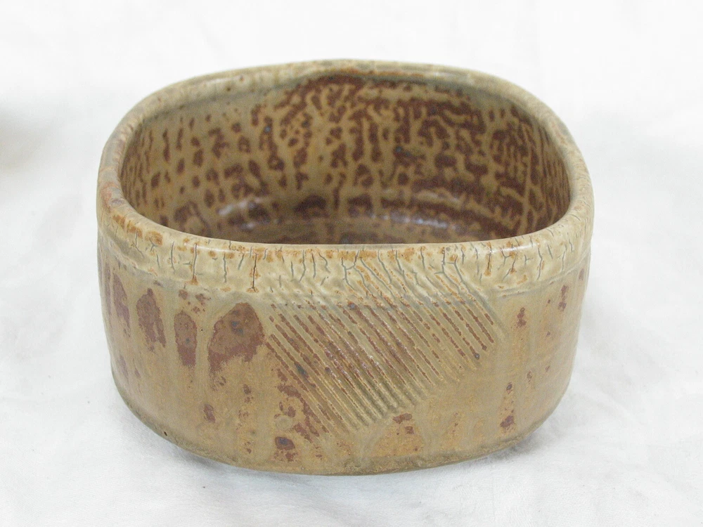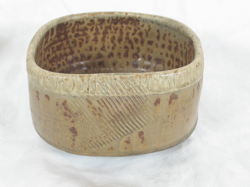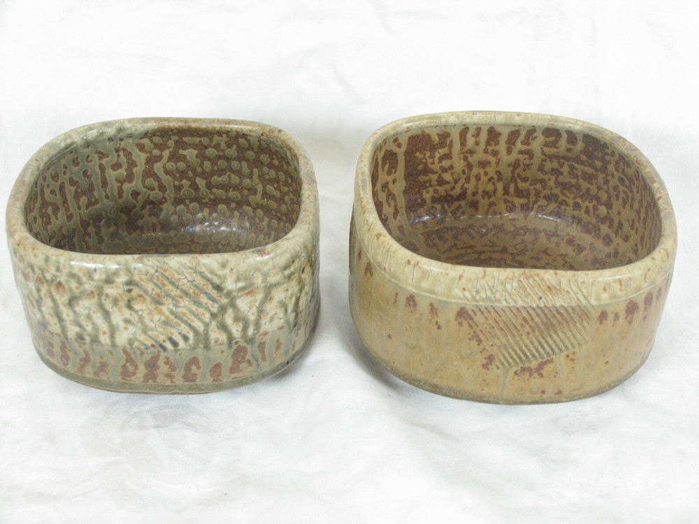 Robert Briscoe squared serving bowl with a wonderful surface textured glaze with an incised design on all four sided. They are in excellent condition and has no issues. One measures 5 3/4" x 3.5" h The second is 5.5" x 3.5" If any question let me know
