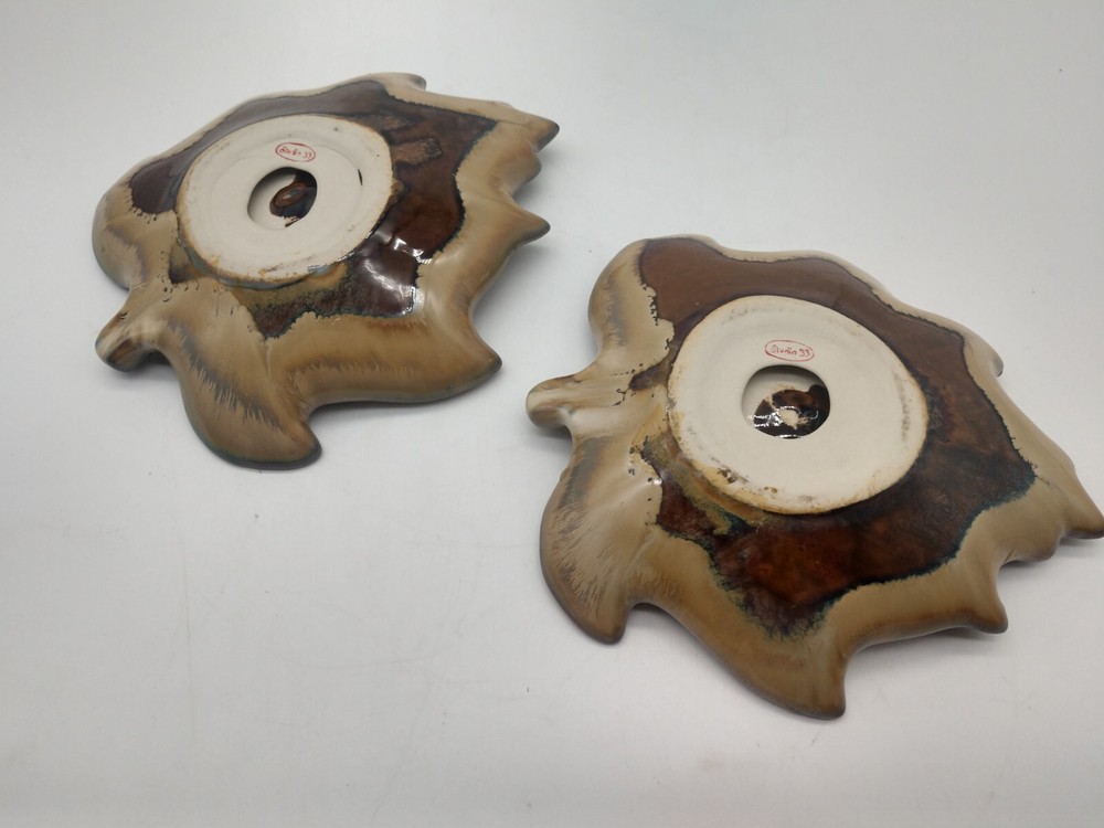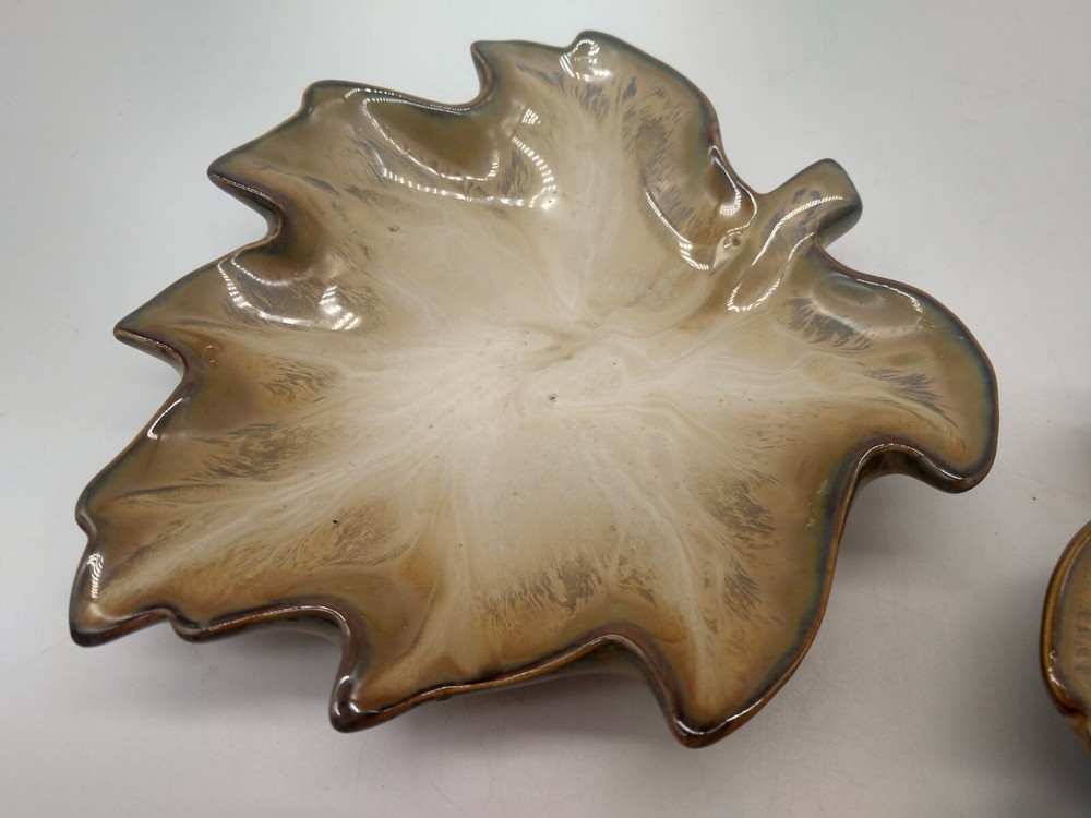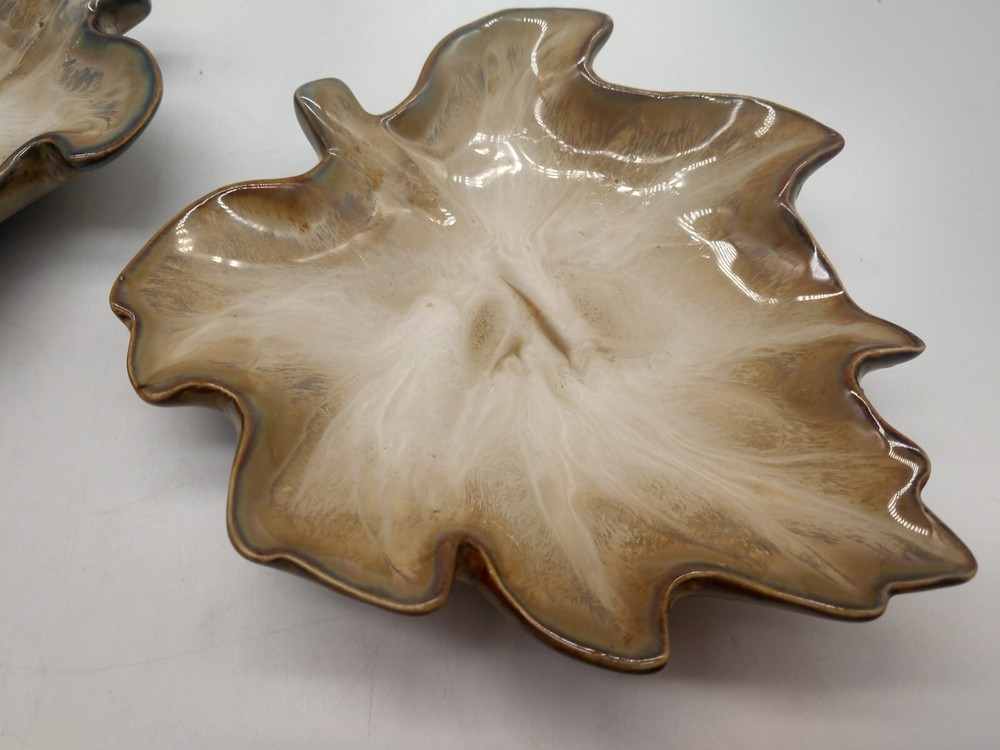2 Studio 33 Hand-Painted Beige and Brown Ceramic Leaf Dish Great for Candies Treats or Trinket especiall at Thanksgiving Approx Measurements 6 inch tall 5 inches wide Pre owned in good condition no chips cracks or crazing Any questions please email me happy to help