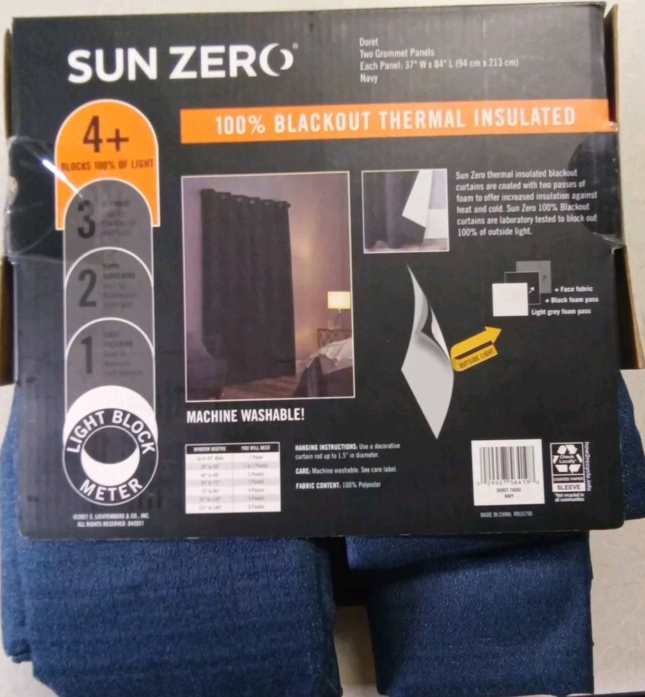 2 Sun Zero Walter Grommet Panels 37"x 84" Navy...