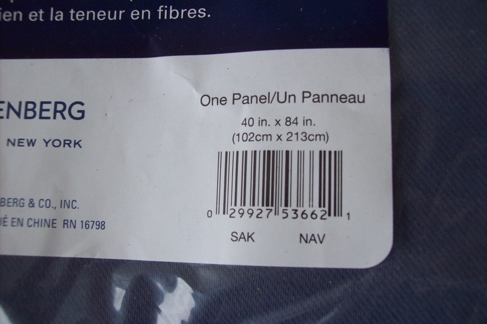 BRAND: Sun Zero ITEM: Grommet top curtain panel PATTERN: Shibori print COLOR: Navy blue SIZE: 40 inches wide X 84 inches long FABRIC: 100% polyester CONDITION: New (one pair of curtains is in original packaging; the other pair is unpackaged) FEATURES: Blackout technology blocks unwanted light and enhances privacy Energy efficient design reduces energy loss up to 30% Thermal properties help keep summer heat and winter chill out Silver metal grommet top fits standard curtain rod up to 1.5" NOTE: The price and shipping cost noted in this listing are for 1 pair of curtains. A second pair of curtains is available at the additional price and shipping cost also noted in this listing.