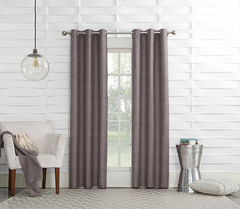 New item, in original package. There is a total of two panels in this auction. 2 - Sun Zero Randall Thermal Insulated Energy Efficient Grommet Curtain Panels 40 x 95 - PLUM Thermal insulated fabric Room Darkening technology blocks out some unwanted light while enhancing privacy Energy efficient design reduces energy lost through your windows by up to 50% Thermal insulation help keep summer heat and winter chill out of your home Noise reduction up to 25% helps you get a sounder, more uninterrupted sleep Built-in metal grommets fit curtain rods up to 1.5" in diameter Sun Zero Randall Thermal Insulated Curtains offer energy efficiency and casual style with a printed linen texture complemented with a modern metal grommet top. Filter the sun from your room as well as provide your home protection from the heat and cold. Thermal insulation, light filtering panels will transmit filtered light. Light can enter the room, while maintaining privacy. The living area can be lit up with incoming light, the atmosphere is friendly. The darker the color the better the filtering capabilities. 1.5 inch grommet opening. Sold individually. Polyester. Machine washable. Imported.