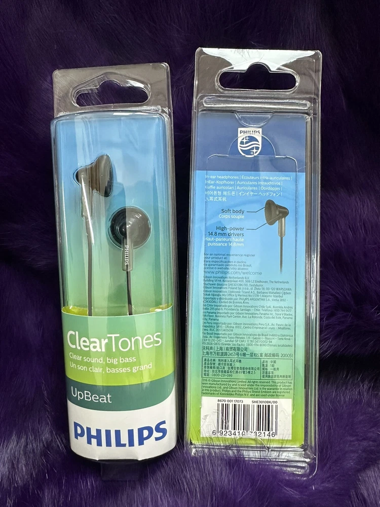 Philips SHE 3010 x 2 pair Sound · Acoustic system: open · Magnet type: Neodymium · Voice coil: copper · Diaphragm: Mylar dome · Frequency response: 12 - 22 000 Hz · Impedance: 16 ohm · Maximum power input: 50 mW · Sensitivity: 107 dB · Speaker diameter: 15 mm · Type: Dynamic Connectivity · Cable Connection: two-parallel, symmetric · Cable length: 1 m · Connector: 3.5 mm · Finishing of connector: nickel plated · Type of cable: copper