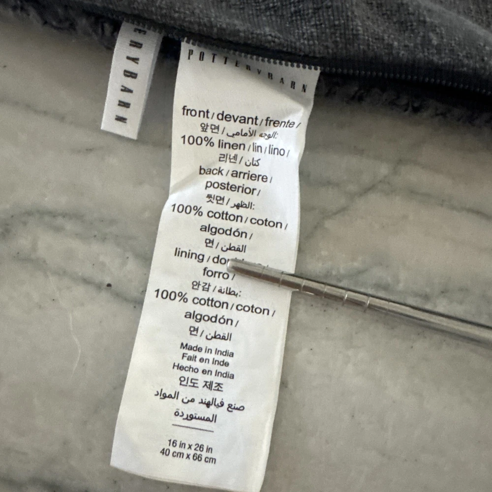 2 x Pottery Barn 16" x 26" Pillow Covers 5383191 Gray Linen Cotton "AS IS" There is wear and pilling to the front - see photos.