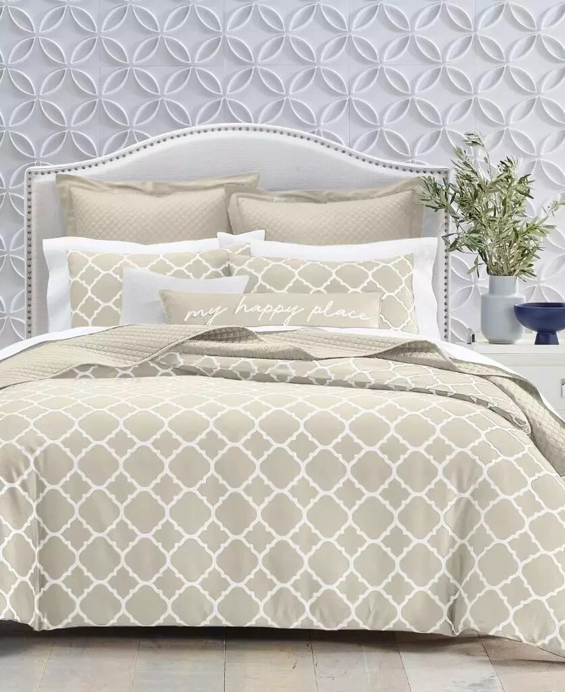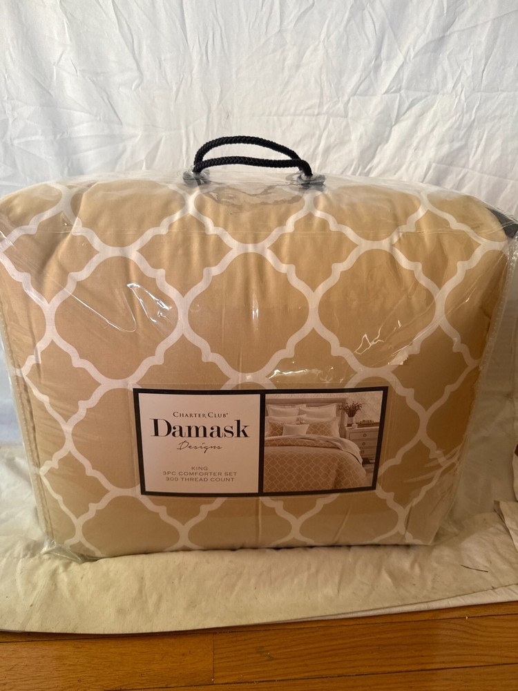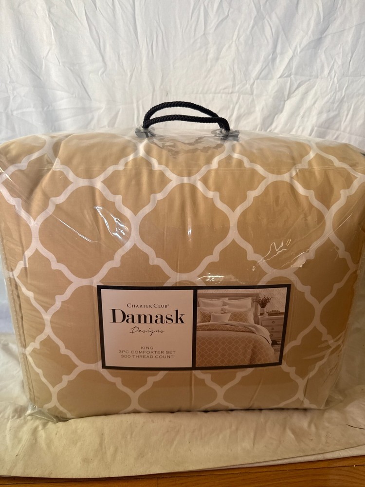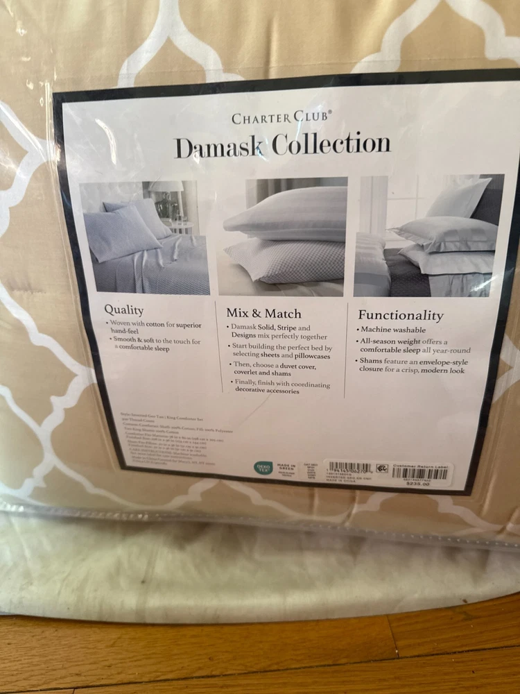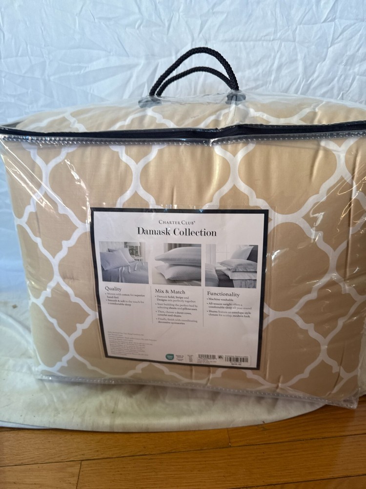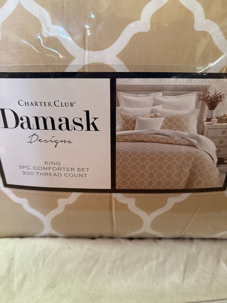 RETAIL PRICE $200.00 BEST PRICE GUARANTEED! Brand: Charter Club Size: King Color: Beige Material: 100% Cotton Condition: NEW WITH TAGS Comforter dimensions: 96" x 108" Materials: 300 Thread Count 100% Pima Cotton Color: Beige Set includes comforter and two shams Comforter dimensions: 96" x 108" Thread Count 100% Pima Cotton Geometric pattern Color: dove Comforter cotton; comforter fill: polyester Machine washable Imported 100% Authentic Product