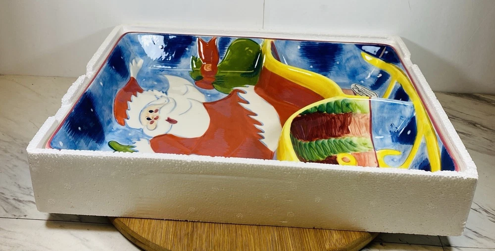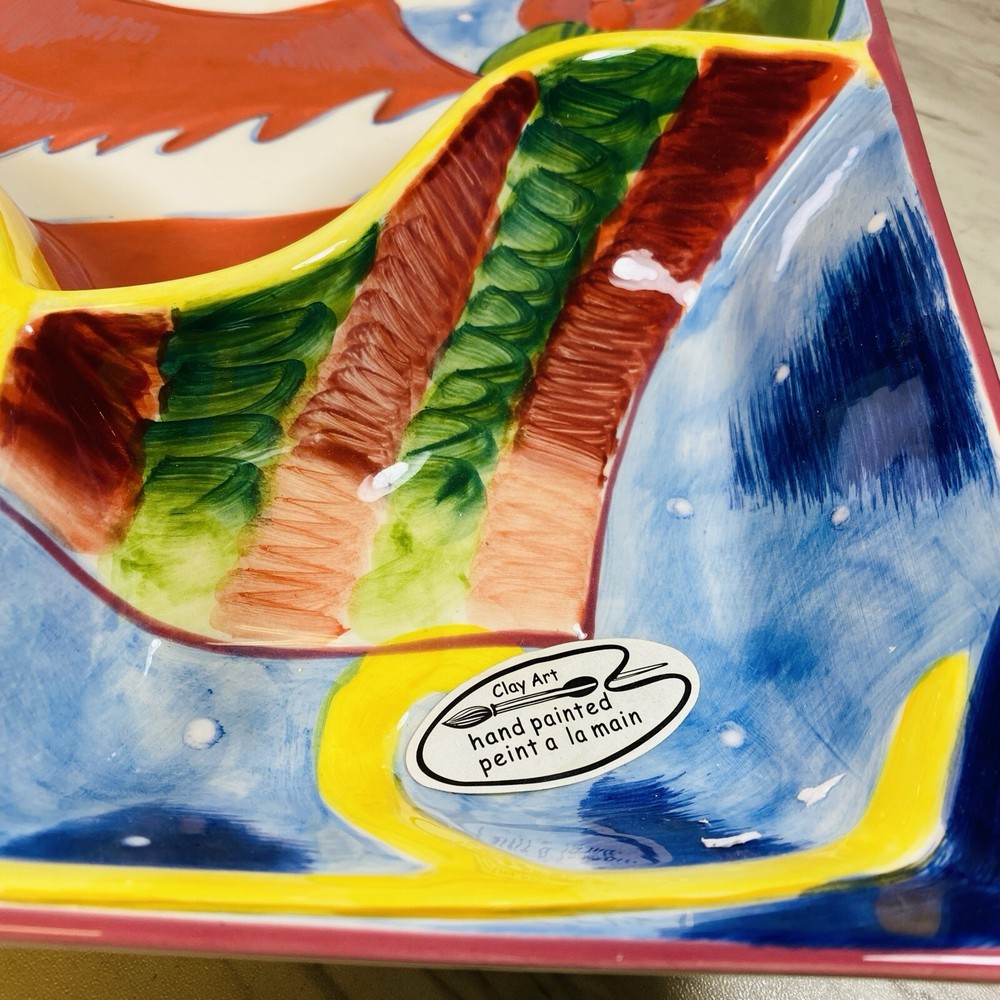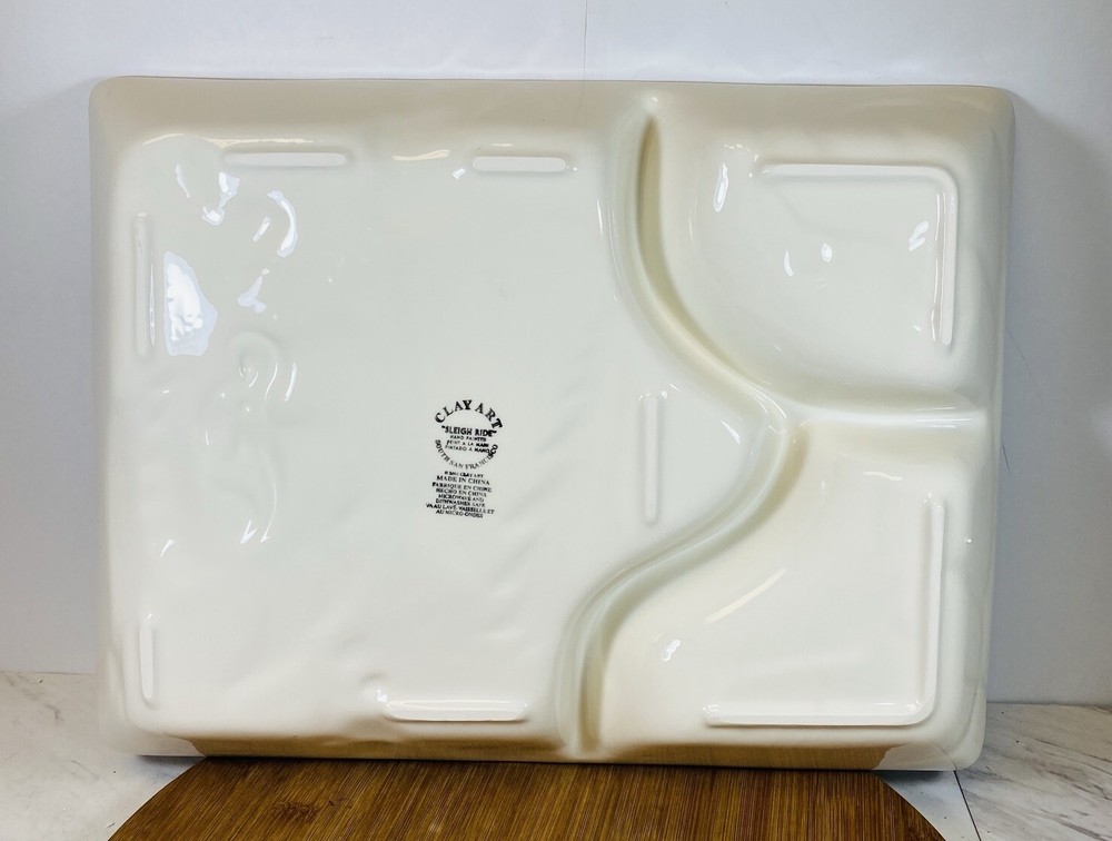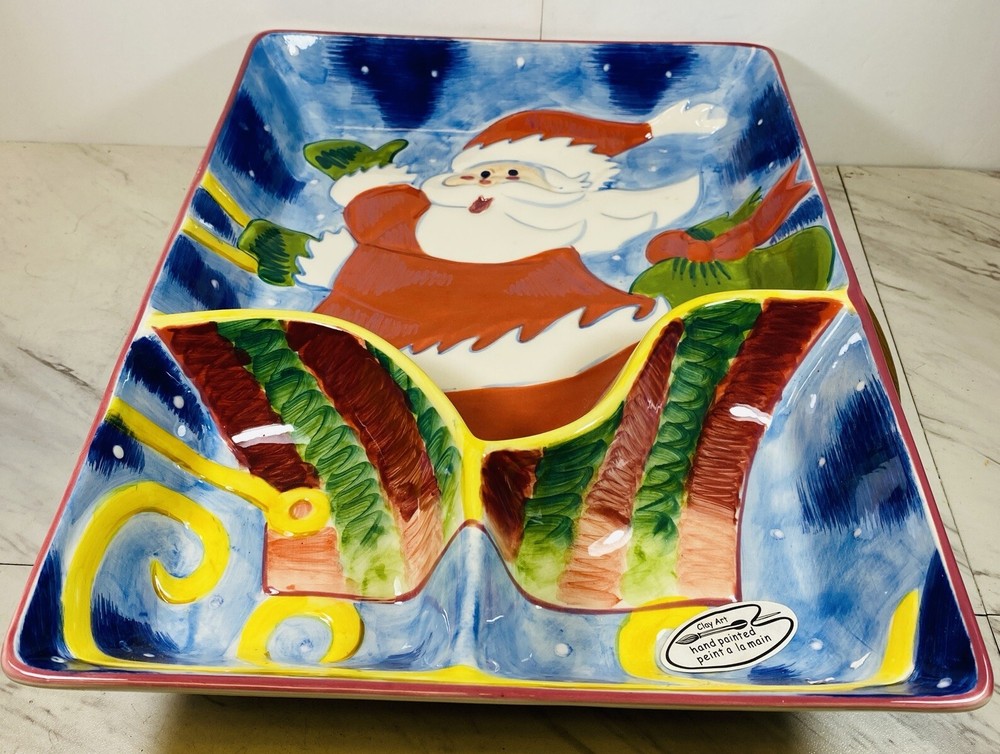 2001 Vintage Colorful Christmas Clay Art "Sleigh Ride" Chip 'N Dip Platter. Condition is New. Shipped with USPS Ground Advantage....