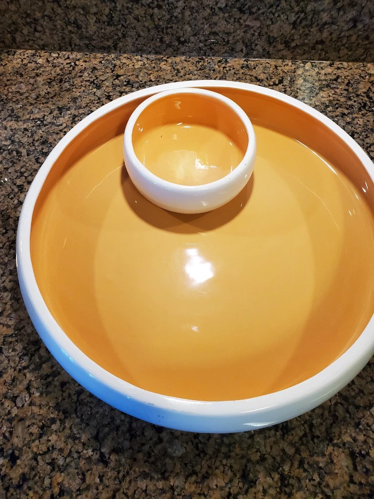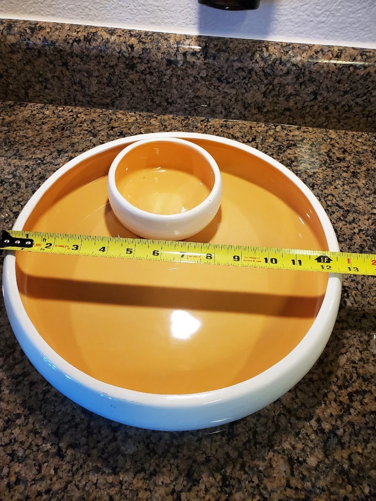 2005 BORTNER & BORTNER Stoneware Glazed Round Chip & Dip Serving Tray Bowl. Pre-owned in great condition...