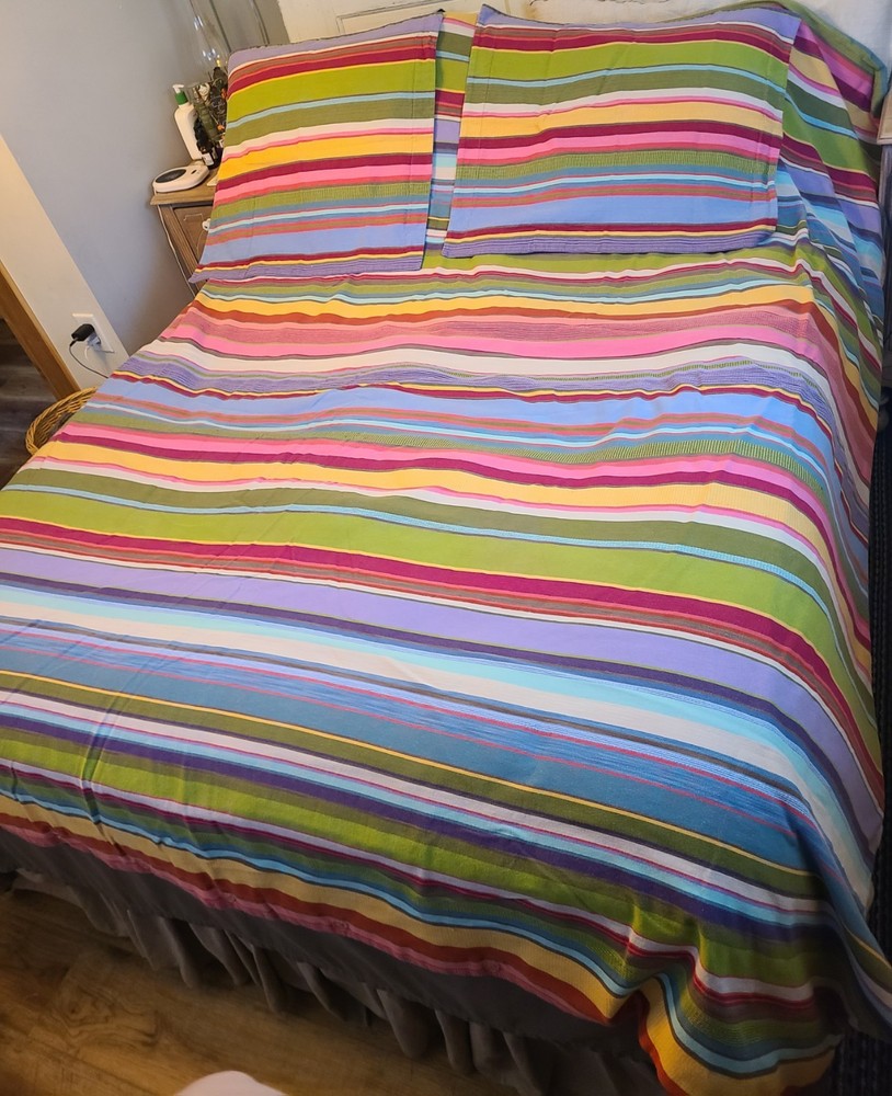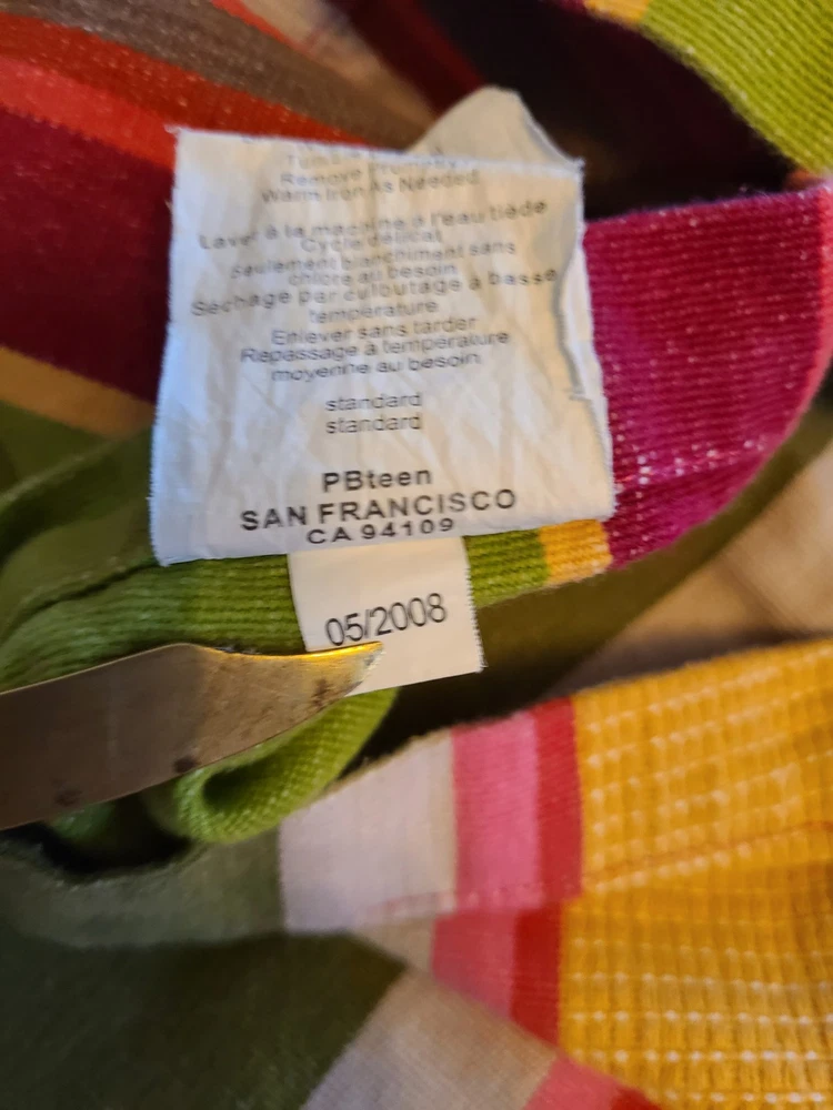 2008 Potterybarn Teen Full Queen Duvet W Euro Sham Set Stripped 100% Cotton. Any imperfections are shown in the pictures.