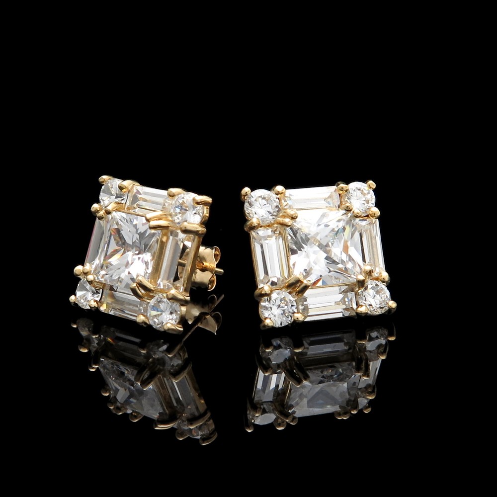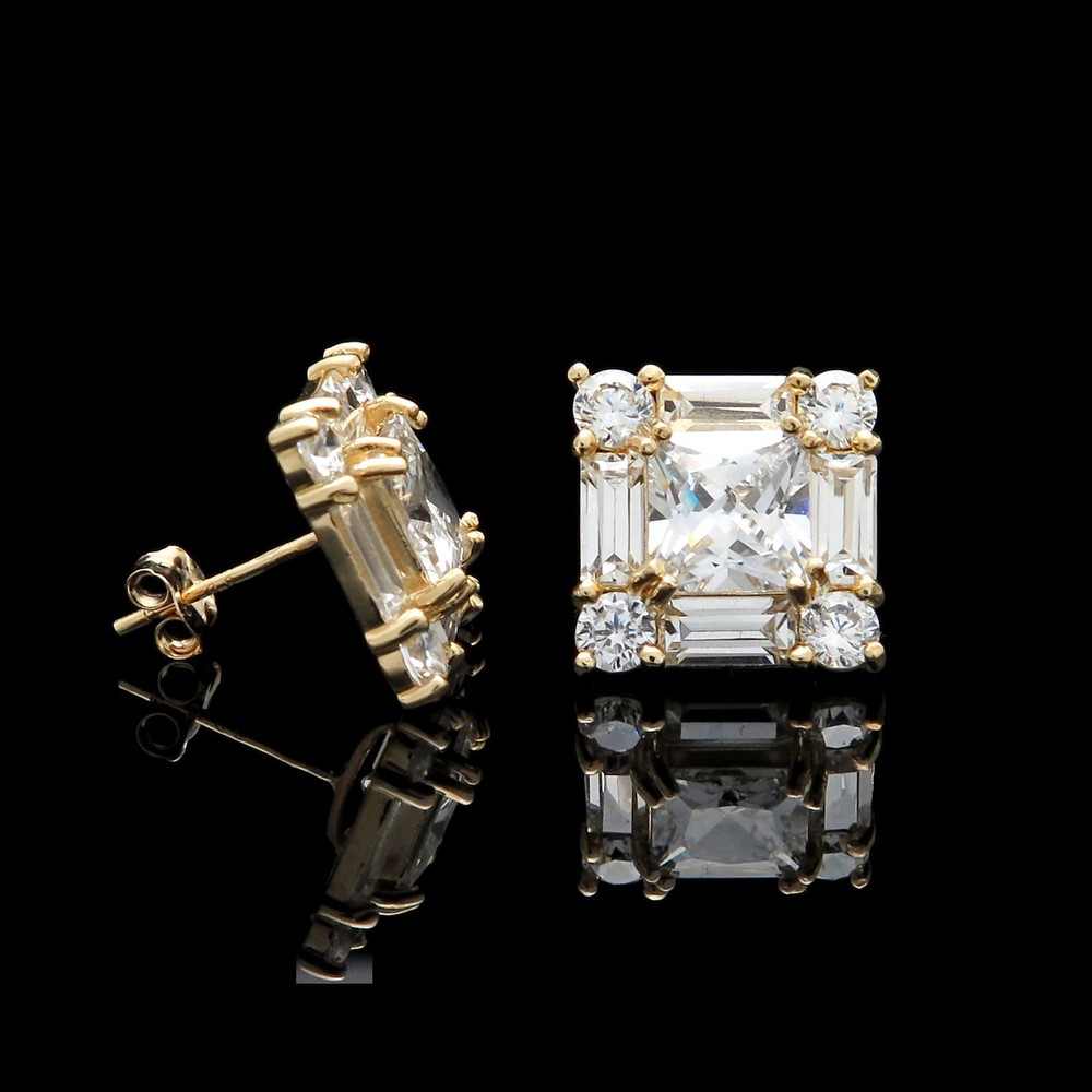 Elegant and stylish square cluster earrings with superb bright brilliant round, princess and baguette simulated diamonds totaling 2ct. These beautiful diamonds are set in heavy heavy basket cluster setting with secure butterfly fastenings, all crafted from solid 14K yellow gold ** Fast & Free US Shipping ** *** 30-Days Money Back Guarantee *** Our simulated diamonds feature ideal cut, brighter D color and VVS1 clarity making them visually indistinguishable from natural stones that cost thousands of dollars. We only use high quality solid gold heavy basket settings and fastenings, WE DO NOT sell plated or gold filled jewelry. Every pair is shipped with a presentable Gift Box so you can make a perfect gift for birthday, anniversary, wedding, Christmas or simply make a great addition to your own fine jewelry collection. ***If you need different size/style earrings, please visit our store as we carry a HUGE variety of fine and fashion jewelry*** Stone Specifications Type: Simulated Diamond Cut: Princess, Round, Baguette Color | Clarity: D | VVS1 Total Carat Weight: 2.00ct | 1.00tcw each stud Basket Specifications: Metal: Yellow Gold | Solid Metal Purity: 14K | 585 (EU) Setting: Square 9.5mm x 9.5mm Fastening: Butterfly Push Back Stamped: 14K Retail Price: $499.99 Promotion Sale: $399.99 *Please visit our store for more styles and sizes* Payment We only accept payments through eBay (PayPal, VISA, MasterCard, Am Ex, Discover). Payments must be made within 48 hours from the purchase. Please let us know if you are waiting to purchase another item, or need more time to make full payment, and we will not open an unpaid item case Shipping Items will be shipped via United States Postal Service 1st Class mail. We usually ship same or next business day after payment is cleared and will provide a tracking number. Please allow 2-5 business days for delivery. We also offer next day delivery to most U.S. addresses via Express mail. For guaranteed next day delivery, please contact us. Return Policy We offer 30 days money back guarantee. you can send back your item for a full refund within 60 days after delivery day. Note that the items should be returned in their original, new condition otherwise it will not be accepted, Buyer is responsible for return postage, unless item is damaged or not as described. We do our best to provide an outstanding customer service, so if there is any problem or a concern, please contact us via eBay messages ANYTIME. We will solve any issues and make sure you are 100% SATISFIED ! Please contact us if you are not happy with your purchase for ANY reason. Thank you.