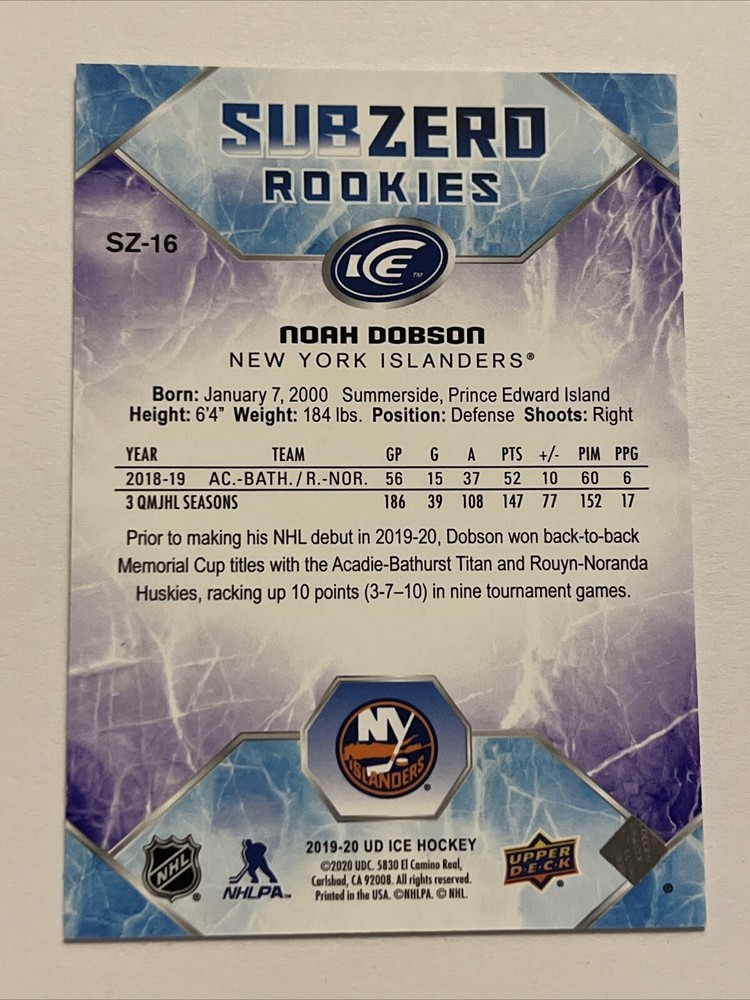 2019-20 Upper Deck Ice Noah Dobson Sun Zero 648/999. Condition is Ungraded. Shipped with USPS Ground Advantage....