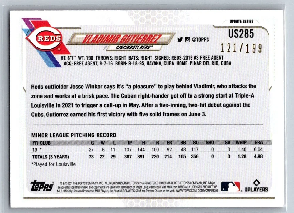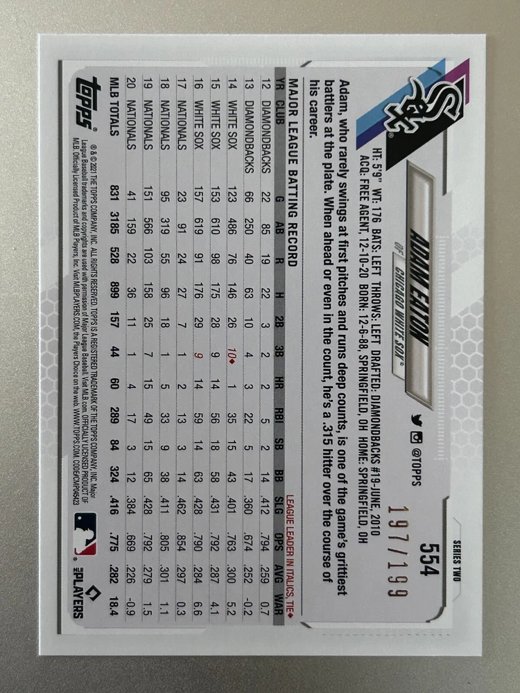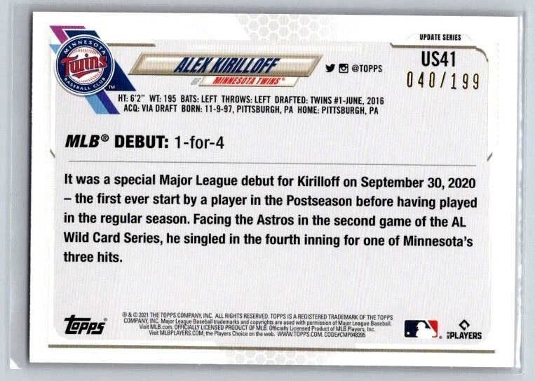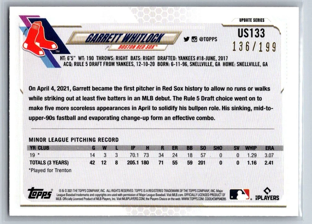 Absolutely love these red foil parallels! The /199 print run makes them feel extra special, and the cards arrived in perfect condition just as described. The scanner lines mentioned weren't noticeable at all in person—these shine beautifully under light. Great seller with accurate listings and fast shipping. Highly recommend for any collector looking to add unique 2021 Topps parallels to their set!