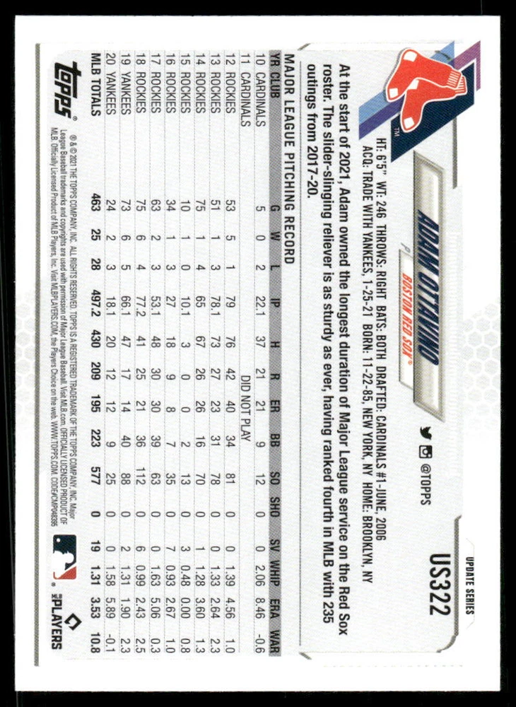 Choose from the different 2021 Topps Update Series Baseball cards available in the drop down menu (US166-US330) to either complete your set or add to your collection. Buy 2 and save 40%. Buy 3 and save 50% Buy 4 and save 60% Free shipping is Plain White Envelope USPS. Cards will be grouped in team bags in penny sleeves if you purchase 3 or more. Purchasing 2 or less, the cards will come in top loaders grouped in team bags. Please check out my other auctions and buy it now listings! No International Shipping.