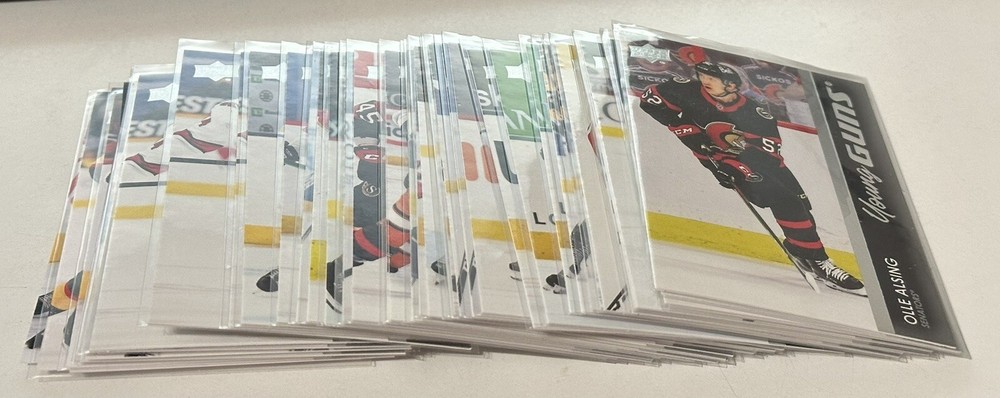 Get your hands on the set of 2021-22 Upper Deck Hockey Series 1 & Series 2 Young Guns, featuring sought-after players like Jamie Drysdale, Arttu Ruotsalainen, and Tanner Laczynski. This set is a must-have for ice hockey fans and collectors alike, especially those rooting for the Buffalo Sabres, Anaheim Ducks, Detroit Red Wings, Montreal Canadiens, Pittsburgh Penguins, Calgary Flames, and Edmonton Oilers. Each card is from the Young Guns series and showcases the players' rookie features. Grab your own Young Guns set now and complete your collection!
