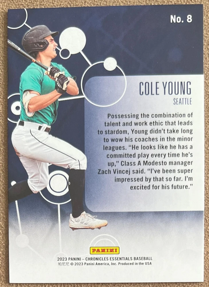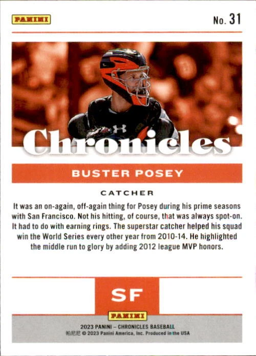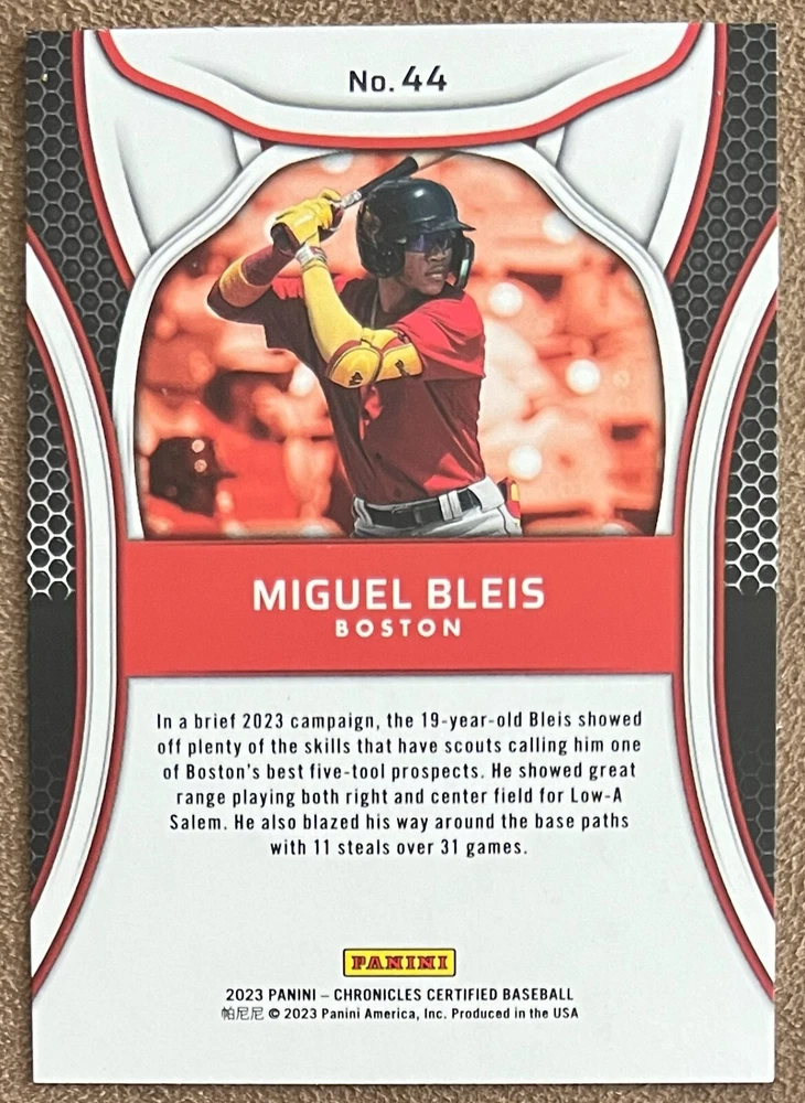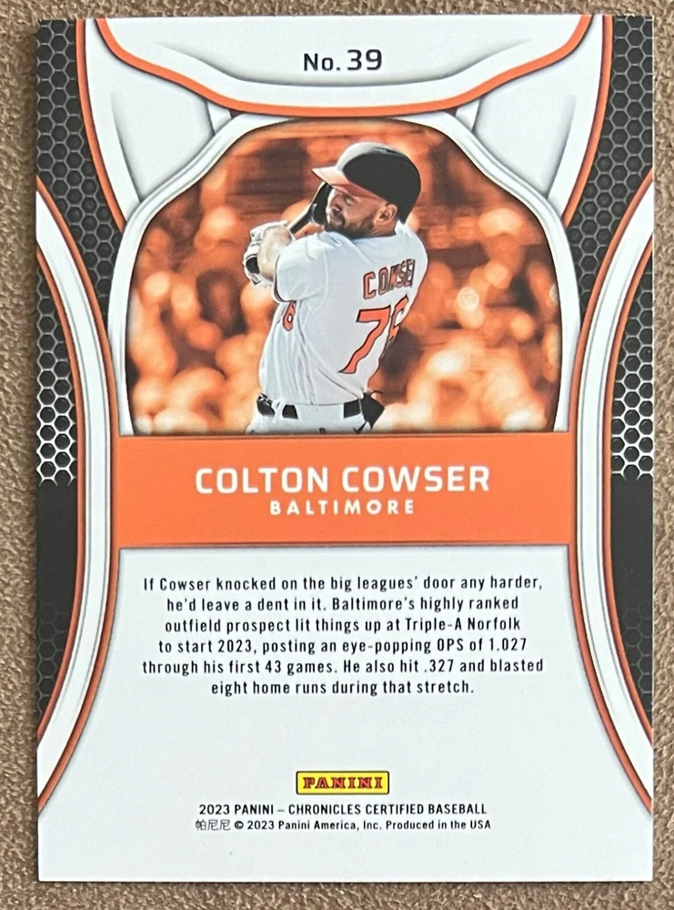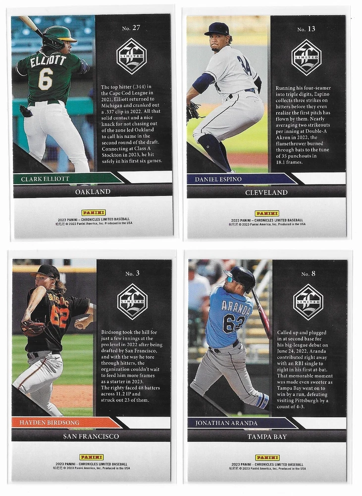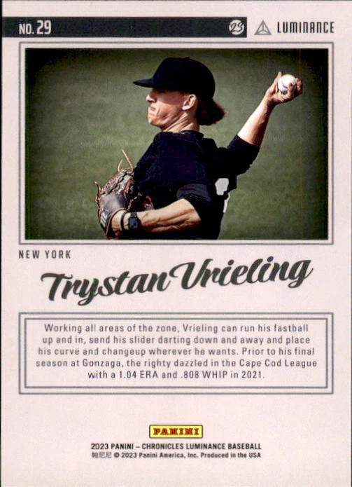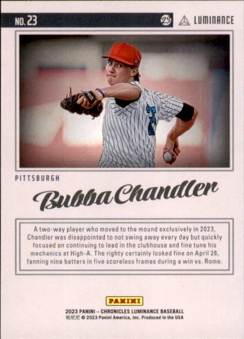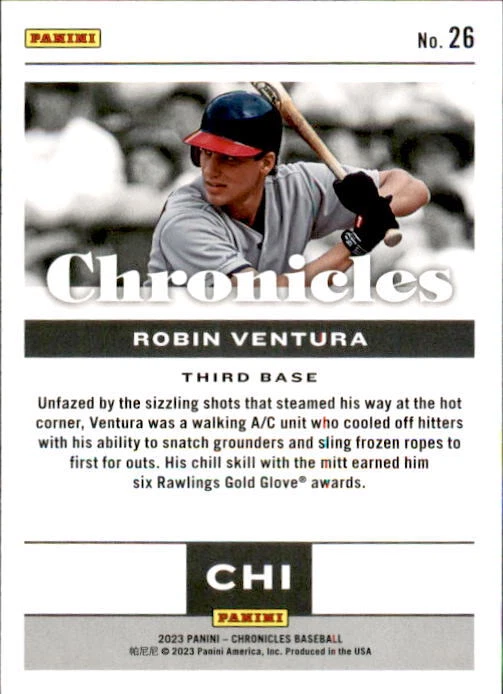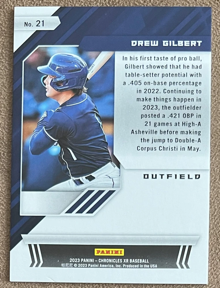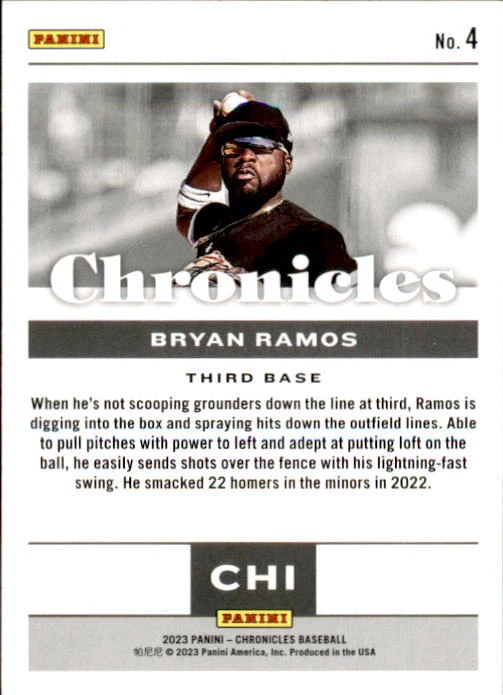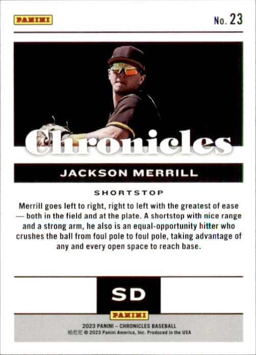 2023 Panini Chronicles Baseball Singles Condition: NRMT or better condition. Shipping: Choose from Plain White Envelope (PWE) -OR- Upgrade at checkout to USPS padded mailer with tracking. ^^^^^ (^HIGHLY RECOMMENDED FOR BETTER PROTECTION^) COMBINED SHIPPING IS ALWAYS AVAILABLE!!! SHIPPING -If you want better protection for your card, there will be the option to upgrade to padded mailer at checkout. -Shipping on the first item is $0.99, with additional cards costing $0.25 each (or possibly less, depending on the listing). -Shipping is capped at a maximum of $10 for any order involving combined shipping. -Low-value singles ($2 or less) may ship in a semi-rigid or attached to rigid cardboard. -Small lots and some thicker cards shipped eBay Standard may ship in a semi-rigid holder so as to meet size requirements. PAYMENT -Payment methods: Credit/Debit Cards, PayPal, Apple Pay, Google Pay, eBay Gift Cards/Codes, and more. -Please submit auction payments within 5 days of the end of the auction. -Immediate payment is required on Buy It Now listings. CONDITION/RETURNS -Returns are accepted within 14 days. If you're not happy with your purchase, don’t hesitate to reach out.