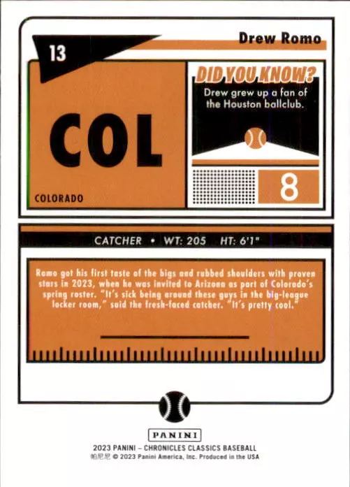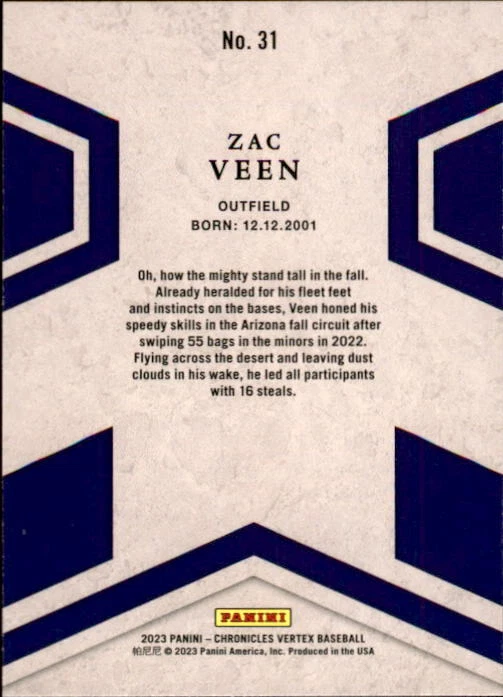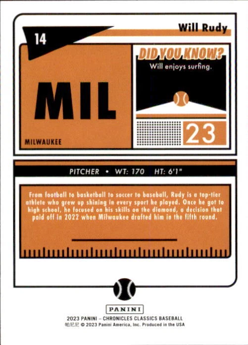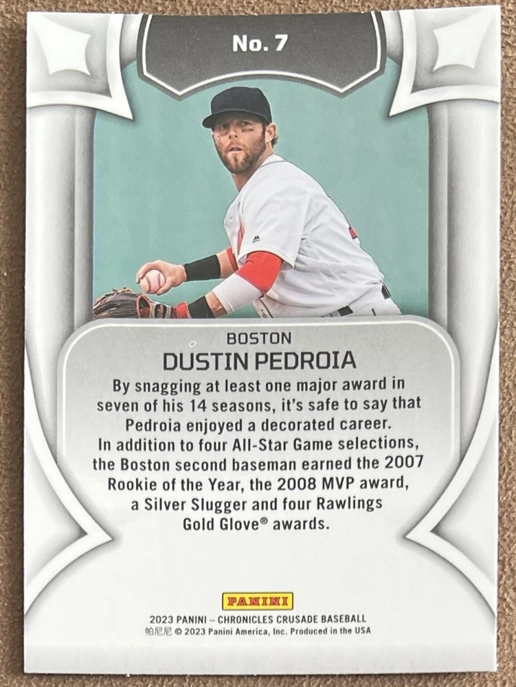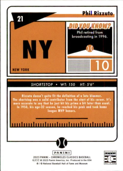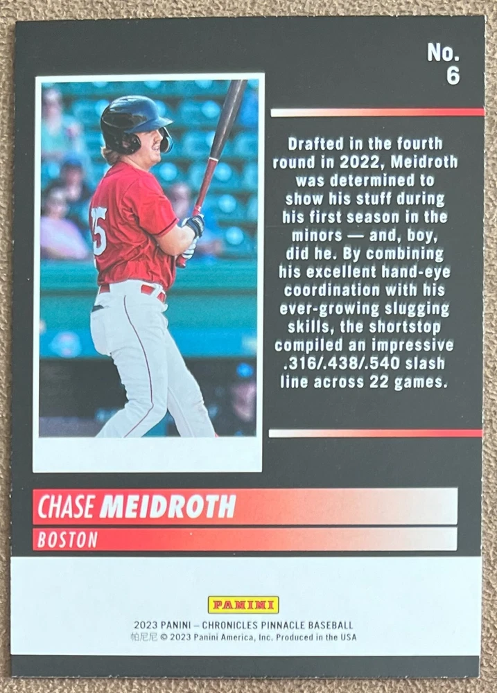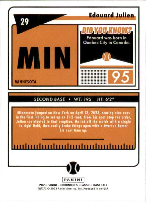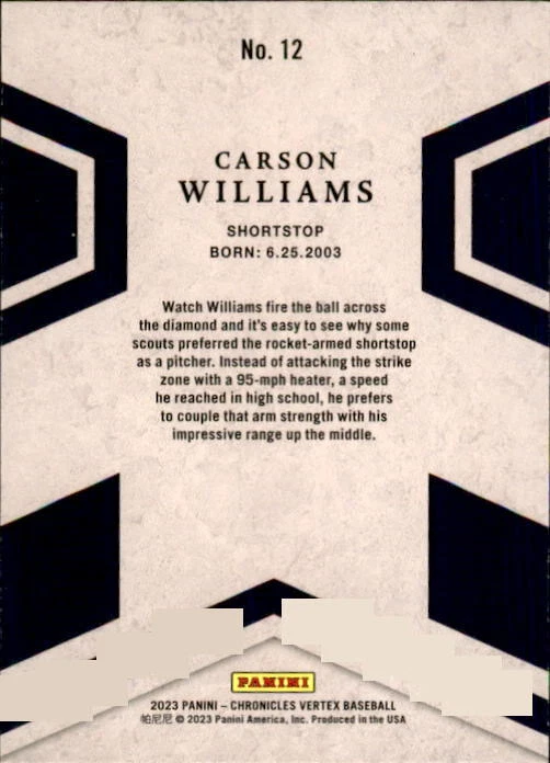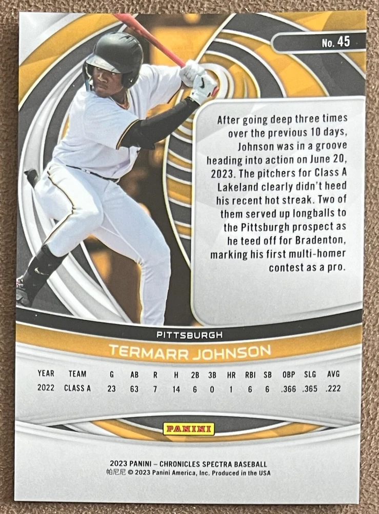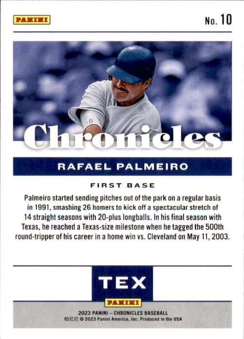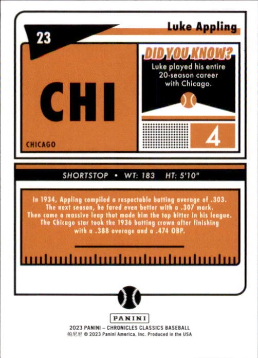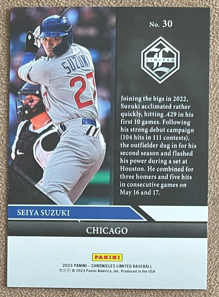 2023 Panini Chronicles Baseball Singles Condition: NRMT or better condition. Shipping: Choose from Plain White Envelope (PWE) -OR- Upgrade at checkout to USPS padded mailer with tracking. ^^^^^ (^HIGHLY RECOMMENDED FOR BETTER PROTECTION^) COMBINED SHIPPING IS ALWAYS AVAILABLE!!! SHIPPING -If you want better protection for your card, there will be the option to upgrade to padded mailer at checkout. -Shipping on the first item is $0.99, with additional cards costing $0.25 each (or possibly less, depending on the listing). -Shipping is capped at a maximum of $10 for any order involving combined shipping. -Low-value singles ($2 or less) may ship in a semi-rigid or attached to rigid cardboard. -Small lots and some thicker cards shipped eBay Standard may ship in a semi-rigid holder so as to meet size requirements. PAYMENT -Payment methods: Credit/Debit Cards, PayPal, Apple Pay, Google Pay, eBay Gift Cards/Codes, and more. -Please submit auction payments within 5 days of the end of the auction. -Immediate payment is required on Buy It Now listings. CONDITION/RETURNS -Returns are accepted within 14 days. If you're not happy with your purchase, don’t hesitate to reach out.