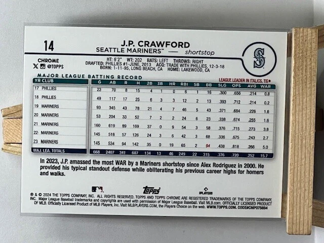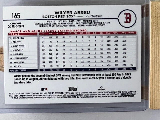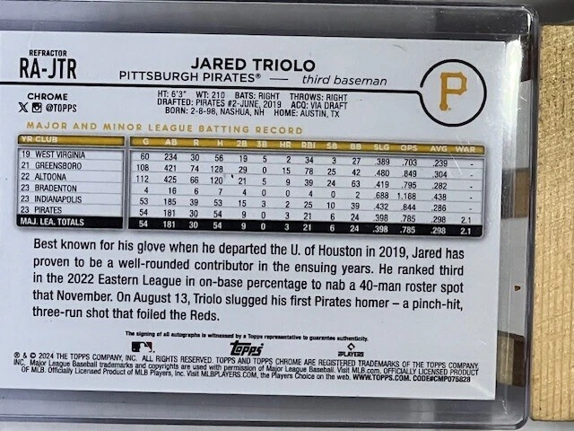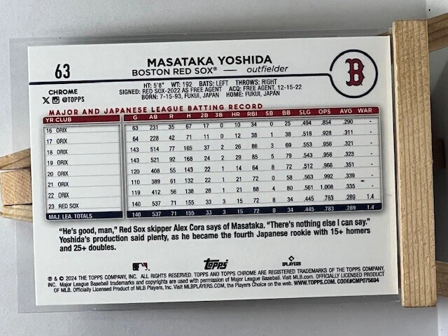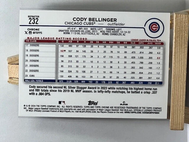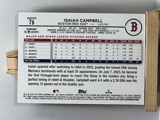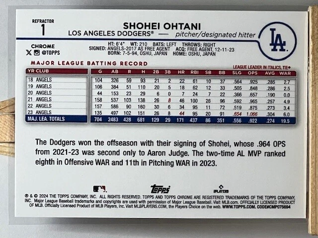 This 2024 Topps Chrome Inserts Parallels Refractors Pink Prism Sepia Raywave cards are a must-have for any baseball fan. With a variety of players to choose from including Bryce Harper, Vladimir Guerrero Jr., and Mookie Betts, these cards are a great addition to any collection. The card features a prism refractor design and/or is a short print, making it a rare find. In addition to the impressive design, this card also has practical features such as a standard size of 35 pt. thickness and is an original. The card is manufactured by Topps and is part of the Major League (MLB) league. With a wide range of teams to choose from including the Philadelphia Phillies, Atlanta Braves, and Los Angeles Dodgers, these cards are a perfect fit for any fan that U-PICK. NOTE: You may submit a best offer by contacting us - if accepted we will change the listed price. Summary of My Selling Policies Payment: Payment due within 3 business days after Auction or instant payment with Buy Now Handling: Fees vary depending on the size of the item, This fee is to pay for Packing Peanuts, Bubble Wrap, Sealing Tape, Shipping Boxes, ect. (This Fee is NOT REFUNDABLE) Free Shipping: Card ships in a plastic sleeve which is than top loaded and place in security envelope or Hardboard envelope. (my cost 1.25) Paid Shipping: Card ships in a plastic sleeve which is than top loaded. We wrap the card in stiff cardboard, place it in a pad envelope for safer shipping. (Your avg cost $4.25) Worldwide Shipping : (Extra Fees Apply contact seller) Refunds, Returns, Damaged, Defective or Misrepresented Items May be returned for a refund Item price excluding S&H Reimbursement will be given after return of item Buyer is liable for Return Shipping AS-IS Items No Returns - No Refunds Items Damaged In Transit Buyer must have Shipping Insurance for a claim Buyer must take item to USPS w/claim form No Insurance. Seller is Not Responsible and will NOT refund any funds By Placing a Bid you Agree to all the terms in this listing. Contact us first with any Questions before you Bid or Buy Now. (It Typically takes about 1-2 hrs to reply) BID OR BUY NOW WITH CONFIDENCE, WE HAVE OVER 3000 POSITIVE FEEDBACKS