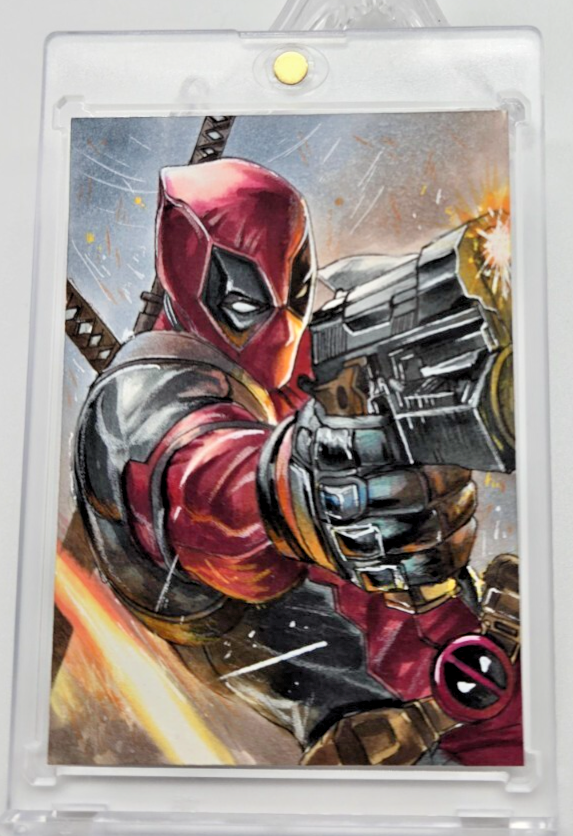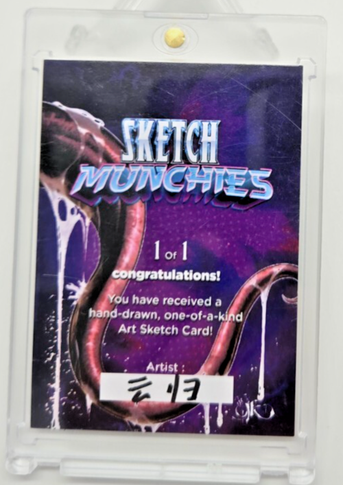 The 🔥 2025 Sketch Munchies DeaDPooL 1/1 One of One Hand Drawn Sketch trading card is a rare and unique collectible . This one-of-a-kind card is hand-drawn and part of a limited set, making it a highly sought-after item for fans and collectors. With its exclusive design and limited availability, this card is sure to be a prized addition to any trading card collection.