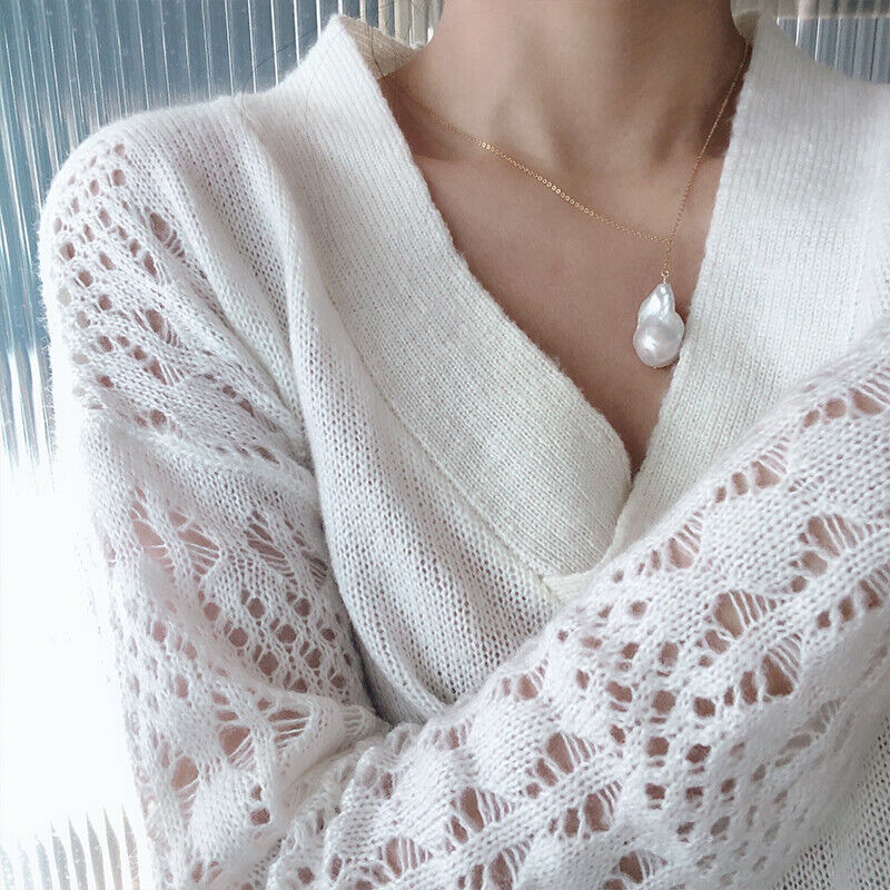 Gems Info: Southsea cultured pearl, multi shape white pearl, good quality, high luster. Diameter: 22 mm(fancy pearl) length: 18"(necklace) clasp: 925 silver clasp Packing: Silk Pouch 22 mm Single shaped baroque pearl necklace18KGP link Lutong