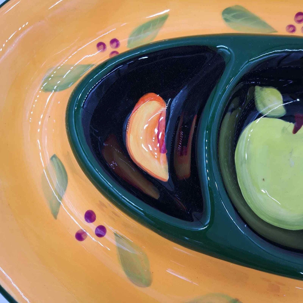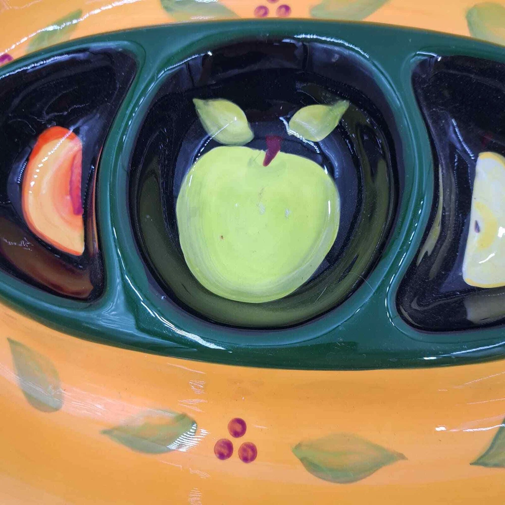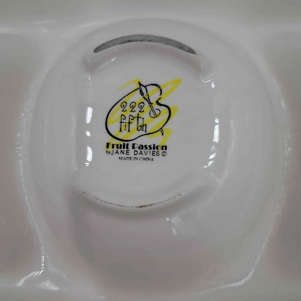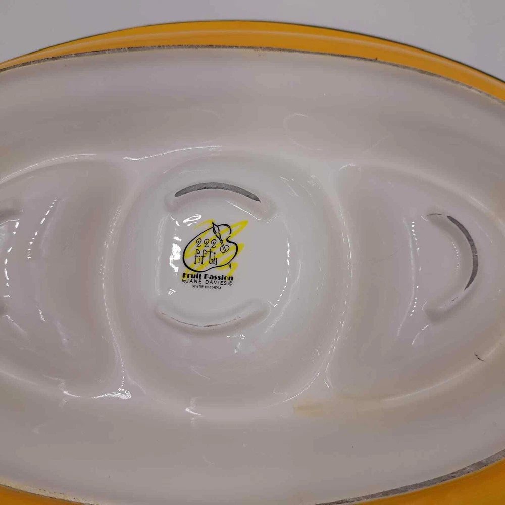<![CDATA[<div>222 FIFTH BY JANE DAVIES FRUIT PASSION LARGE CHIP & DIP SERVING OVAL PLATTER. PATTERN : FARMERS MARKET PRODUCTION: POTTERY DECORATIVE ART POTTERY BACKSTAMP PRINTED DISHWASHER SAFE