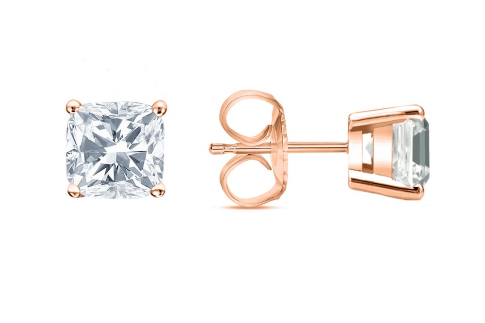2.25 Carat Cushion Brilliant Cut Solitaire Stud Push Back Basket Earrings in Solid 14K Rose Gold These exquisite created diamond stud ear rings are crafted out of solid 14k rose gold and brilliant man-made created diamonds. This design of stud earrings is one of the most desired and classy of all. They are set in a unique, secure, 4-prong designer style setting. They emit every shade of light that a natural diamond would emit. The radiance and fire of these created diamonds is equivalent if not superior to a natural diamond of a VVS1 Clarity, D Color, Excellent Cut. Brand --> Shine Brite With A Diamond Total Carat Weight (TCW) --> 2.25 Carat (1.125 Ct. (Approx. 6.75 mm) each) Metal --> Real, Genuine, Solid Rose Gold Metal Purity --> 14K (585) Gem Type --> Created Diamond Design --> Studs Main Stone Shape --> Cushion, Brilliant Cut Diamond Color --> D Diamond Clarity --> VVS1 Setting --> 4-Prong Designer Style Type of Post or Back --> Push Back Number of Stones --> 2 Country of Manufacture --> United States Origin of Stones --> Created Diamond Availability --> Limited Quantity EVERY GEMSTONE COMES WITH A LIFETIME GUARANTEE! Our created diamonds are guaranteed to last a lifetime or we will replace them free of charge! So What Will I Be Receiving in the Mail? A Pair of Genuine Solid 14 Karat Rose Gold Cushion Brilliant Cut Stud Earrings . An Elegant and Luxury Jewelry Box. Certificate of Appraisal with a Lifetime Warranty. REFUNDS We guarantee your satisfaction and offer a 30-day money-back return (or exchange) policy. If for ANY reason you are unsatisfied with your purchase, please contact us first before opening up a case or leaving negative/neutral feedback so that we could make things right! We are here to help YOU! SHIPPING All items will ship free within 1 business day with USPS Priority Mail for expedited delivery. Please select the FedEx shipping options for even faster (overnight and 2-day) delivery. CONTACT US We're always available by e-mail through eBay messages 24 hours a day, 7 days a week. Please feel free to contact us anytime with any questions or concerns you may have.