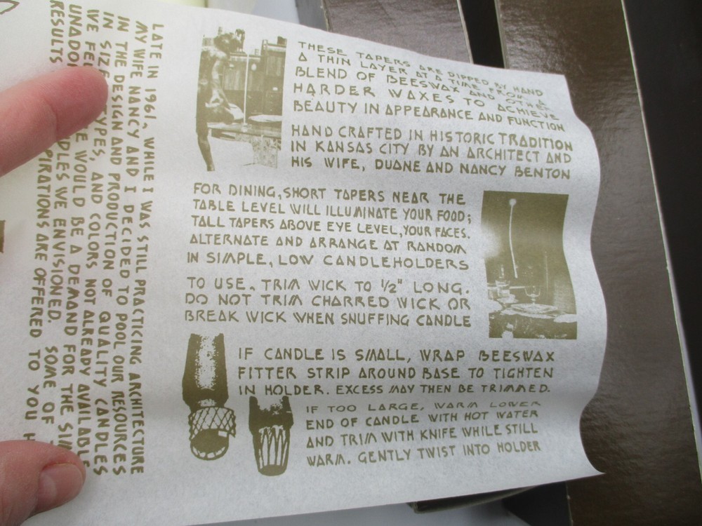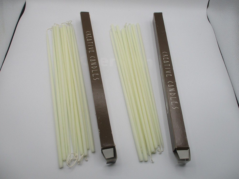 These are new in their boxes, and are hand dipped Beeswax, crafted by Duane & Nancy Benton for Creative Candles. They measure 15" X 1/4" and are ivory color. Please look closely at my photos for details. Item 2455
