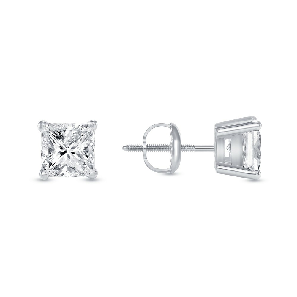 2.75 Carat Princess Brilliant Cut Solitaire Stud Screw Back Basket Earrings in Solid 14K White Gold These exquisite simulated diamond stud ear rings are crafted out of solid 14k white gold and brilliant man-made diamonds. This design of stud earrings is one of the most desired and classy of all. The diamonds are set in a unique, secure, 4-prong designer style setting. The diamonds emit every shade of light that a natural diamond would emit. The radiance and fire of these created diamonds is equivalent if not superior to a natural diamond of a VVS1 Clarity, D Color, Excellent Cut. Brand --> Shine Brite With A Diamond Total Carat Weight (TCW) --> 2.75 Carat (1.375 Ct. (Approx. 7.25 mm) each) Metal --> Real , Genuine , Solid White Gold Metal Purity --> 14K (585) Gem Type --> Man-Made/Simulated Diamond Design --> Studs Main Stone Shape --> Princess, Brilliant Cut Diamond Color --> D Diamond Clarity --> VVS1 Setting --> 4-Prong Designer Style Type of Post or Back --> Screw Back Number of Stones --> 2 Country of Manufacture --> United States Origin of Stones --> Man-Made or Simulated Diamond Availability --> Limited Quantity EVERY GEMSTONE COMES WITH A LIFETIME GUARANTEE! Our simulated diamonds are guaranteed to last a lifetime or we will replace them free of charge! So What Will I Be Receiving in the Mail? A Pair of Genuine Solid 14 Karat White Gold Princess Brilliant Cut Stud Earrings . An Elegant and Luxury Jewelry Box. Certificate of Appraisal with a Lifetime Warranty. REFUNDS We guarantee your satisfaction and offer a 30-day money-back return (or exchange) policy. If for ANY reason you are unsatisfied with your purchase, please contact us first before opening up a case or leaving negative/neutral feedback so that we could make things right! We are here to help YOU! SHIPPING All items will ship free within 1 business day with USPS Priority Mail for expedited delivery. Please select USPS Express Mail for RUSH Delivery. CONTACT US We're always available by e-mail through eBay messages 24 hours a day, 7 days a week. Please feel free to contact us anytime with any questions or concerns you may have.