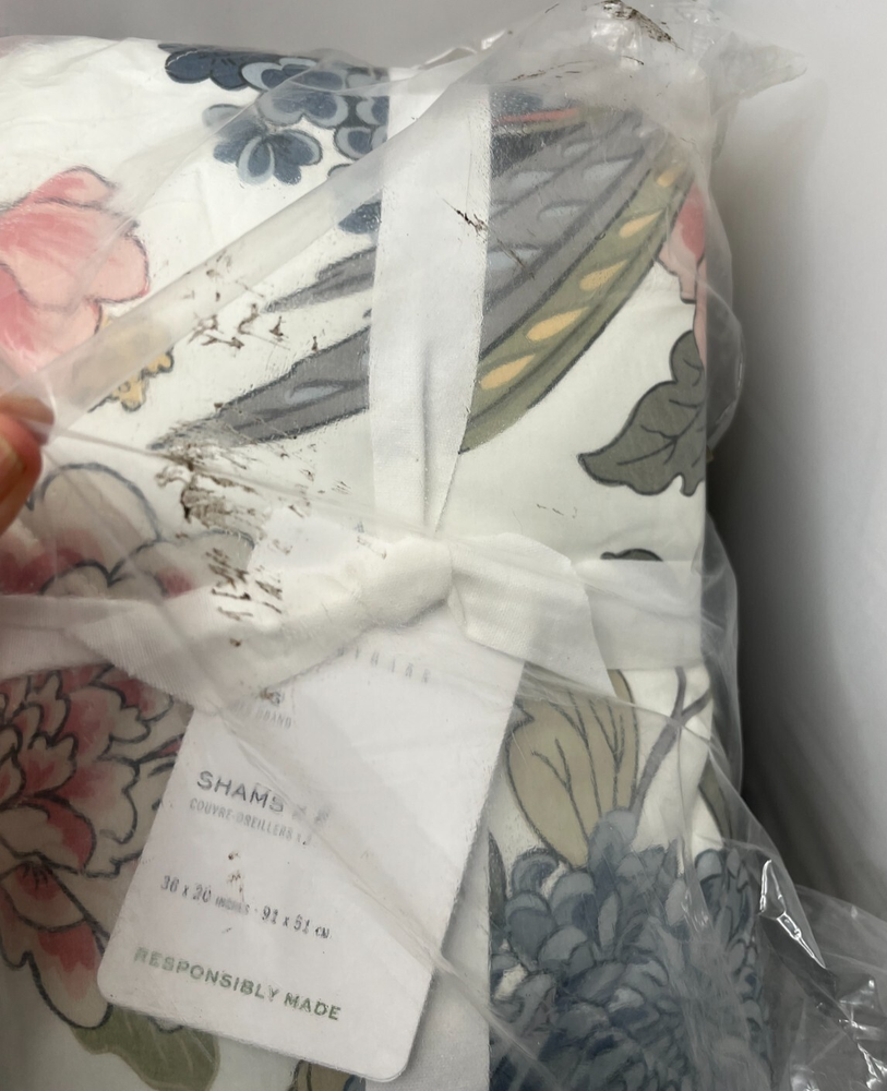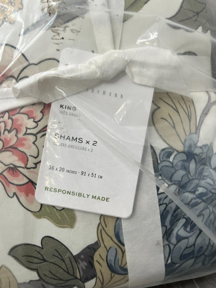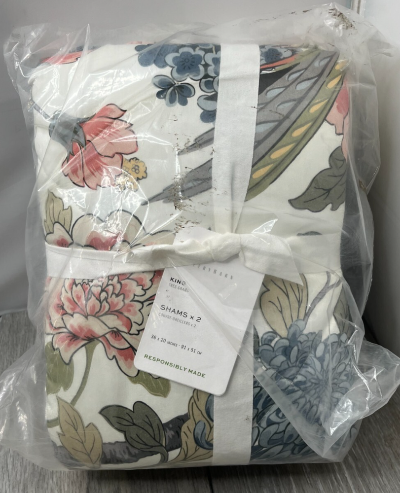 This sale is for ONE Package Pillow Shams (2 Shams inside Package) Bag-OTHER: New in plastic package, outer package has some dark dirt stains/marks and shelf wear as seen in pics. This does NOT affect the Contents. NOTE: Cover pic has stock pic of sham for Representation ONLY. Color may vary from this depiction. This Sale is for 2 Pillow Shams. Please see the pictures for more details on the condition and the content(s) of this listing. The photos are the actual item(s) you will receive. Unless there are multiple quantities, then there can be slight variations from the item(s) pictured. (nothing more than what is displayed) Please verify fit/usage and ask questions before purchase. Brand: Pottery Barn Product: Pillow Shams Material: 100% Cotton Sateen Fill Material: 100% Polyester Batting Dimensions: 20" W x 36" L Size: King Closure: Overlap Pattern: Floral/Bird Color: Ivory Multicolor Qty: 1 Package (2 Shams inside Package) More Info: Floral/Bird Print on both sides. Overlap Closure, Machine Washable. Bag-OTHER: New in plastic package, outer package has some dark dirt stains/marks and shelf wear as seen in pics. This does NOT affect the Contents. NOTE: Cover pic has stock pic of sham for Representation ONLY. Color may vary from this depiction. This Sale is for 2 Pillow Shams. If there are any questions, please ask them before the purchase. Our handling time is 2 business days and we use a variety of shipping carriers. Please contact us if you have specific needs on shipment before purchase. We only use eBay labels, so make sure that your address is correct before purchasing. Our Goal is to provide you with a happy transaction, please kindly contact us if there are concerns, so we know how to best provide customer service!