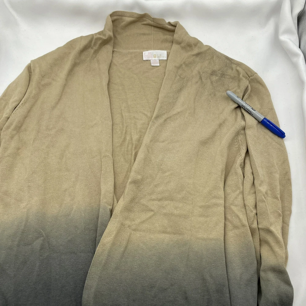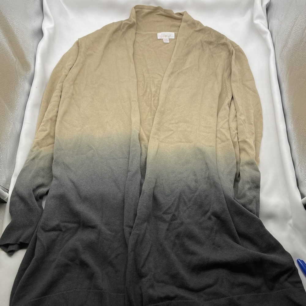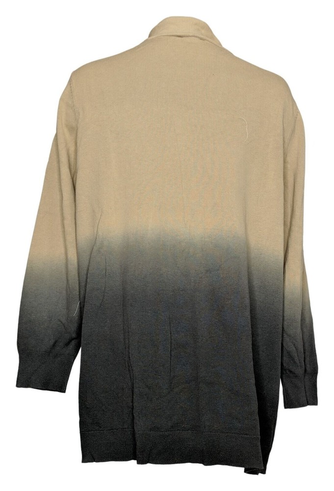 Women's size 2X Armpit to armpit laid flat unstretched seam to seam 24" Fabrication: knit Features: drop shoulder long sleeves ribbed cuffs opening at bottom hem dip-dye fabric effect Fit: relaxed; generously cut with maximum wearing ease Lengths: missy length 29-1/2" thru 31-5/8"; plus length 32" thru 33-3/4" Content: 60% cotton/40% rayon Care: machine wash dry flat 35