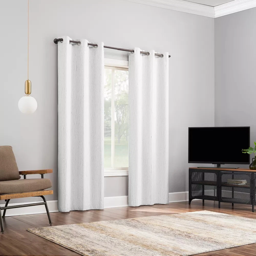 •Total Blackout technology blocks out 100% of outside light while enhancing privacy •Energy efficient design reduces energy lost through your windows by up to 35% •Thermal insulation helps keep summer heat and winter chill out of your home •Noise reduction up to 35% helps you get a sounder, more uninterrupted sleep •Built-in metal grommets fit curtain rods up to 1.5" in diameter •Pair includes 2 panels. Measure carefully prior to purchase. Description Featuring a unique vertical strie design, Sun Zero Halleck Curtain Panel Pairs adds intrigue and depth to any living space. Equipped with grommets for easy hanging on standard curtain rods up to 1.5" in diameter. Sun Zero Total Blackout Thermal Insulation is laboratory tested to block out 100% of light, red Shop Our Store Contact Us Add to Favorite Sellers 2pc 37"x96" Sun Zero Halleck Vertical Strie 100% Blackout Grommet Curtain Panel Pair Pearl: Modern Thermal Insulated Product Details •Total Blackout technology blocks out 100% of outside light while enhancing privacy •Energy efficient design reduces energy lost through your windows by up to 35% •Thermal insulation helps keep summer heat and winter chill out of your home •Noise reduction up to 35% helps you get a sounder, more uninterrupted sleep •Built-in metal grommets fit curtain rods up to 1.5" in diameter •Pair includes 2 panels. Measure carefully prior to purchase. Description Featuring a unique vertical strie design, Sun Zero Halleck Curtain Panel Pairs adds intrigue and depth to any living space. Equipped with grommets for easy hanging on standard curtain rods up to 1.5" in diameter. Sun Zero Total Blackout Thermal Insulation is laboratory tested to block out 100% of light, reduce outside noise by up to 40%, and decrease energy lost through your windows by up to 40%. Comfort is optimized with thermal properties that help keep summer heat and winter chill out of your home. Hang in your entertainment room to eliminate screen glare and reduce distracting outside noise, or in your bedroom for enhanced privacy and a sounder, more uninterrupted sleep. Mount rods at least 2" above the window for maximum light blocking. Pair includes 2 pearl panels, each measuring 37" width by 96" length. Measure carefully before selecting your desired size and quantity. Rod not included. Machine wash cold on gentle cycle. Use non-chlorine bleach when needed. Tumble dry on low heat, using a cool iron as needed. Number of Pieces: 2 Dimensions (Overall): 96 Inches (L), 37 Inches (W) Fabric Name: Plain Weave Textile Material: 100% Polyester Accommodates Pole Size: 1.5 Inches Indoor/Outdoor: Indoor Features: Energy Efficient, noise reduction, Thermal Insulated Required, Not Included: Rod Hanging style: Grommet Top Light Filtration: Blackout Single Panel Weight: 1.37 Pounds Care & Cleaning: Iron as Needed, Machine Dry, Machine Wash Payment For fixed priced listings, Buy it Now and Best Offer, payment is required at the time of purchase. We accept PayPal and credit cards via PayPal. We make every effort of shipping within 1 business day of payment clearing. All payments must be through PayPal, utilizing eBay checkout. For auction listings, payment is required within two (2) days of purchase. Any items not paid within two (5) days will risk the product being re-listed and sold to another buyer. Taxes - US We collect sales tax, as required by law. Please see the Shipping and Payments tab for more information. Shipping For fixed priced listings, Buy it Now and Best Offer, payment is required at the time of purchase. We accept PayPal and credit cards via PayPal. We make every effort of shipping within 1 business day of payment clearing. All payments must be through PayPal, utilizing eBay checkout. For auction listings, payment is required within two (2) days of purchase. Any items not paid within two (2) days will risk the product being re-listed and sold to another buyer. Policies If you do need to return your item, please contact us via phone or email (you will receive an email when your product ships with additional details - Subject: Important information about your purchase from Bullseye Deals). You will then be provided with a return shipping label and packing slip. Pack the item carefully. Include the packing slip, apply the shipping label, and return the item within 5 business days of the date you request a return. You must return the item within 5 business days of requesting the return, or your return will be canceled. Once we receive your order we will inspect the return. Please allow up to 5 business days of receiving the returned item for your refund.