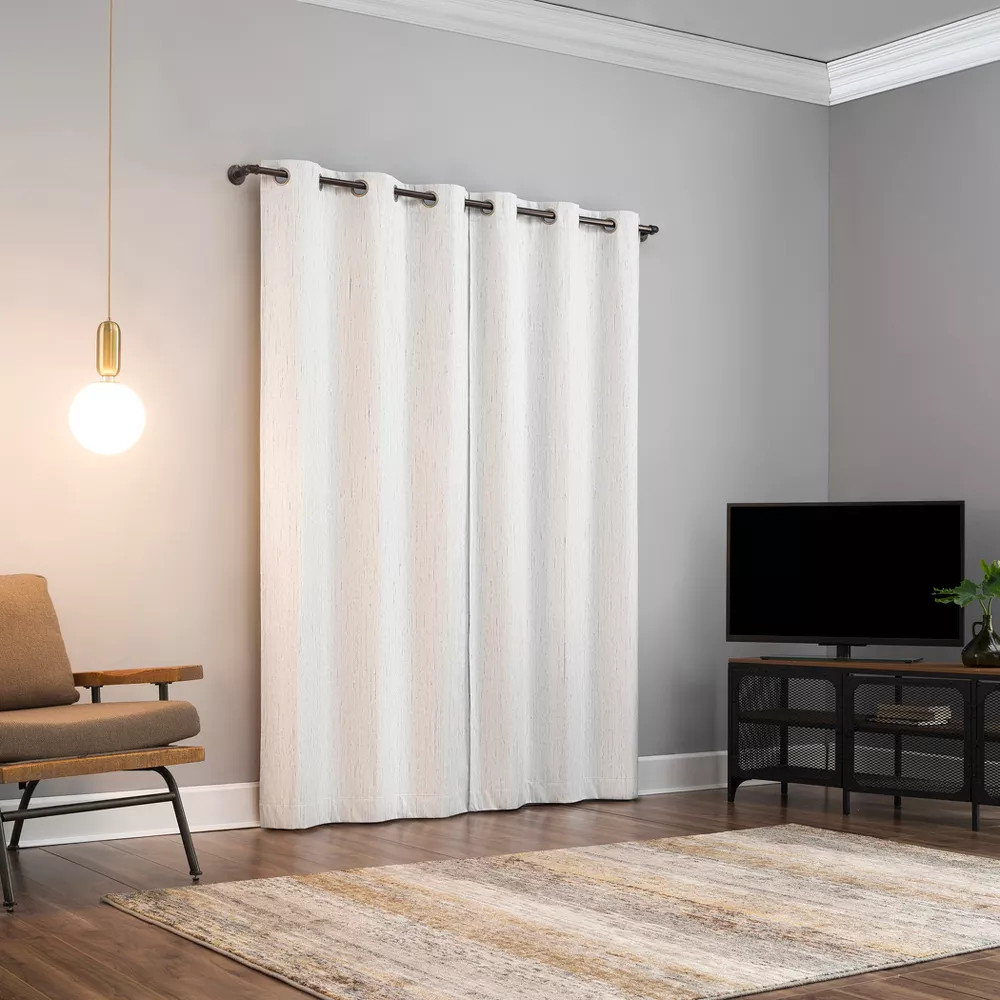•Total Blackout technology blocks out 100% of outside light while enhancing privacy •Energy efficient design reduces energy lost through your windows by up to 35% •Thermal insulation helps keep summer heat and winter chill out of your home •Noise reduction up to 35% helps you get a sounder, more uninterrupted sleep •Built-in metal grommets fit curtain rods up to 1.5" in diameter •Pair includes 2 panels. Measure carefully prior to purchase. Description Featuring a unique vertical strie design, Sun Zero Halleck Curtain Panel Pairs adds intrigue and depth to any living space. Equipped with grommets for easy hanging on standard curtain rods up to 1.5" in diameter. Sun Zero Total Blackout Thermal Insulation is laboratory tested to block out 100% of light, red Shop Our Store Contact Us Add to Favorite Sellers 2pc 37"x96" Sun Zero Halleck Vertical Strie 100% Blackout Grommet Curtain Panel Pair Pearl: Modern Thermal Insulated Product Details •Total Blackout technology blocks out 100% of outside light while enhancing privacy •Energy efficient design reduces energy lost through your windows by up to 35% •Thermal insulation helps keep summer heat and winter chill out of your home •Noise reduction up to 35% helps you get a sounder, more uninterrupted sleep •Built-in metal grommets fit curtain rods up to 1.5" in diameter •Pair includes 2 panels. Measure carefully prior to purchase. Description Featuring a unique vertical strie design, Sun Zero Halleck Curtain Panel Pairs adds intrigue and depth to any living space. Equipped with grommets for easy hanging on standard curtain rods up to 1.5" in diameter. Sun Zero Total Blackout Thermal Insulation is laboratory tested to block out 100% of light, reduce outside noise by up to 40%, and decrease energy lost through your windows by up to 40%. Comfort is optimized with thermal properties that help keep summer heat and winter chill out of your home. Hang in your entertainment room to eliminate screen glare and reduce distracting outside noise, or in your bedroom for enhanced privacy and a sounder, more uninterrupted sleep. Mount rods at least 2" above the window for maximum light blocking. Pair includes 2 pearl panels, each measuring 37" width by 96" length. Measure carefully before selecting your desired size and quantity. Rod not included. Machine wash cold on gentle cycle. Use non-chlorine bleach when needed. Tumble dry on low heat, using a cool iron as needed. Number of Pieces: 2 Dimensions (Overall): 96 Inches (L), 37 Inches (W) Fabric Name: Plain Weave Textile Material: 100% Polyester Accommodates Pole Size: 1.5 Inches Indoor/Outdoor: Indoor Features: Energy Efficient, noise reduction, Thermal Insulated Required, Not Included: Rod Hanging style: Grommet Top Light Filtration: Blackout Single Panel Weight: 1.37 Pounds Care & Cleaning: Iron as Needed, Machine Dry, Machine Wash Payment For fixed priced listings, Buy it Now and Best Offer, payment is required at the time of purchase. We accept PayPal and credit cards via PayPal. We make every effort of shipping within 1 business day of payment clearing. All payments must be through PayPal, utilizing eBay checkout. For auction listings, payment is required within two (2) days of purchase. Any items not paid within two (5) days will risk the product being re-listed and sold to another buyer. Taxes - US We collect sales tax, as required by law. Please see the Shipping and Payments tab for more information. Shipping For fixed priced listings, Buy it Now and Best Offer, payment is required at the time of purchase. We accept PayPal and credit cards via PayPal. We make every effort of shipping within 1 business day of payment clearing. All payments must be through PayPal, utilizing eBay checkout. For auction listings, payment is required within two (2) days of purchase. Any items not paid within two (2) days will risk the product being re-listed and sold to another buyer. Policies If you do need to return your item, please contact us via phone or email (you will receive an email when your product ships with additional details - Subject: Important information about your purchase from Bullseye Deals). You will then be provided with a return shipping label and packing slip. Pack the item carefully. Include the packing slip, apply the shipping label, and return the item within 5 business days of the date you request a return. You must return the item within 5 business days of requesting the return, or your return will be canceled. Once we receive your order we will inspect the return. Please allow up to 5 business days of receiving the returned item for your refund.