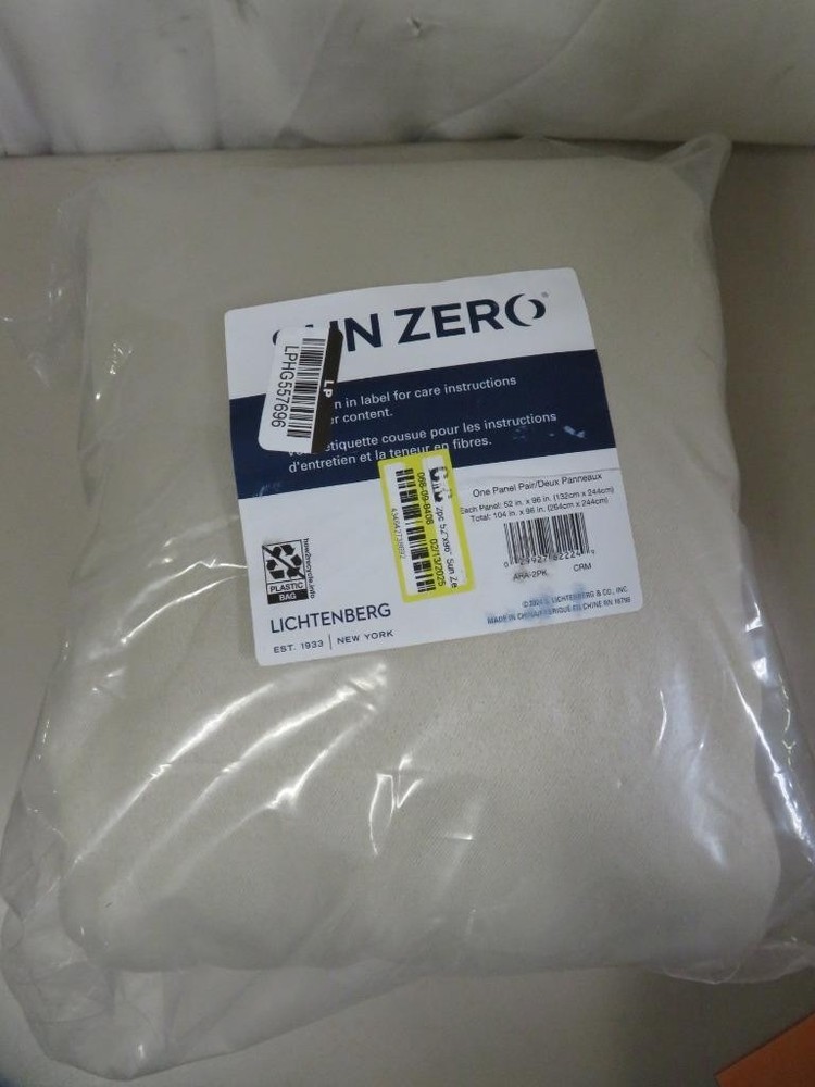 Highlights Extreme Blackout technology with magnetic closure blocks out 100% of outside light Energy Efficient design reduces energy lost through your windows by up to 50% Thermal properties help keep summer heat and winter chill out of your home Noise reduction by up to 45% helps you get a sounder, more uninterrupted sleep Hidden back tabs fit curtain rods up to 1.5" in diameter Pair includes two (2) panels measuring 52" w each. Measure carefully prior to purchase. Description Sun Zero Aria Curtain Panel Pairs provide the ultimate in light blocking technology coupled with magnetic closures to keep out even the harshest of light while bringing an elegant urban sophistication to any room of your home. Sun Zero Extreme Blackout technology is laboratory tested to block out 100% of light, reduce outside noise by up to 45%, and decrease energy lost through your windows by up to 50%. Comfort is optimized with thermal properties that help keep summer heat and winter chill out of your home. Hidden back tabs allow for easy slide-through installation on curtain rods up to 1.5" in diameter. Hang in your entertainment room to eliminate screen glare and reduce distracting outside noise, or in your bedroom for enhanced privacy and a sounder, more uninterrupted sleep. Pair includes 2 cream panels, each measuring 52" width by 96" length. Measure carefully before selecting your desired size and quantity. Rod not included. Machine wash cold on gentle cycle. Use non-chlorine bleach when needed. Tumble dry on low heat, using a cool iron as needed. We will be happy to answer any questions or provide more information, just click "ask a question" at the bottom of the page. Thanks! 2pc Sun Zero Blackout Aria Magnetic Closure Back Tab Curtain Panel Pair 52 x 96 2pc Sun Zero Blackout Aria Magnetic Closure Back Tab Curtain Panel Pair 52 x 96 Click images to enlarge Description Highlights Extreme Blackout technology with magnetic closure blocks out 100% of outside light Energy Efficient design reduces energy lost through your windows by up to 50% Thermal properties help keep summer heat and winter chill out of your home Noise reduction by up to 45% helps you get a sounder, more uninterrupted sleep Hidden back tabs fit curtain rods up to 1.5" in diameter Pair includes two (2) panels measuring 52" w each. Measure carefully prior to purchase. Description Sun Zero Aria Curtain Panel Pairs provide the ultimate in light blocking technology coupled with magnetic closures to keep out even the harshest of light while bringing an elegant urban sophistication to any room of your home. Sun Zero Extreme Blackout technology is laboratory tested to block out 100% of light, reduce outside noise by up to 45%, and decrease energy lost through your windows by up to 50%. Comfort is optimized with thermal properties that help keep summer heat and winter chill out of your home. Hidden back tabs allow for easy slide-through installation on curtain rods up to 1.5" in diameter. Hang in your entertainment room to eliminate screen glare and reduce distracting outside noise, or in your bedroom for enhanced privacy and a sounder, more uninterrupted sleep. Pair includes 2 cream panels, each measuring 52" width by 96" length. Measure carefully before selecting your desired size and quantity. Rod not included. Machine wash cold on gentle cycle. Use non-chlorine bleach when needed. Tumble dry on low heat, using a cool iron as needed. We will be happy to answer any questions or provide more information, just click "ask a question" at the bottom of the page. Thanks! Get images that make Supersized seem small. Showcase your items with Auctiva's Listing Templates! THE simple solution for eBay sellers. Track Page Views With Auctiva's Counter