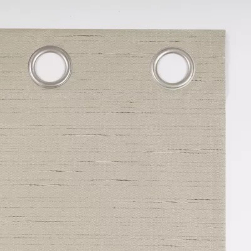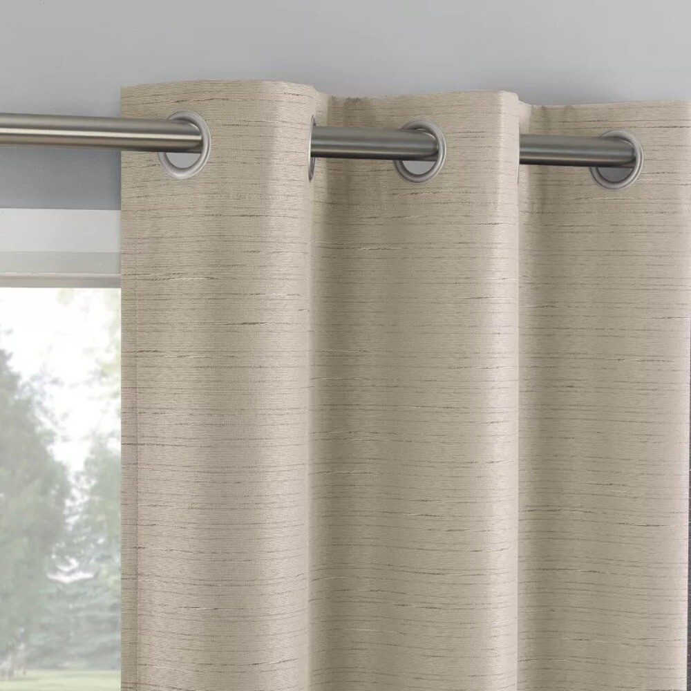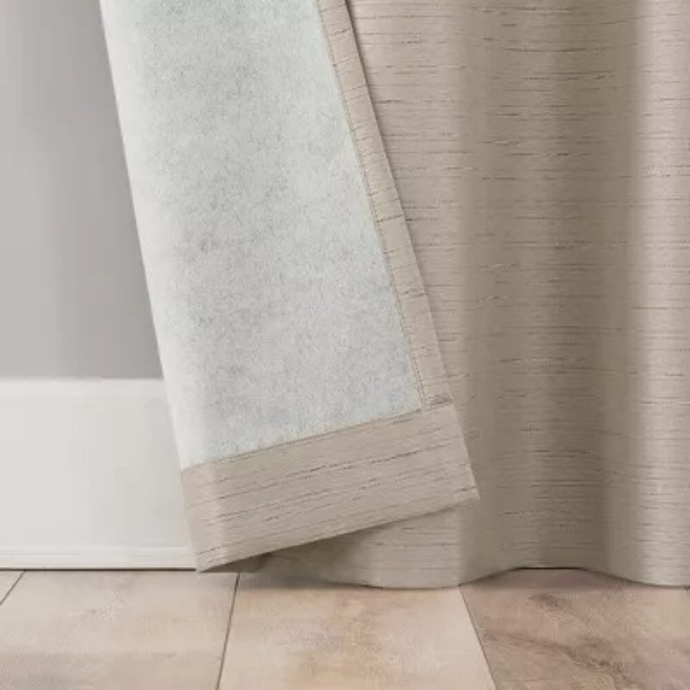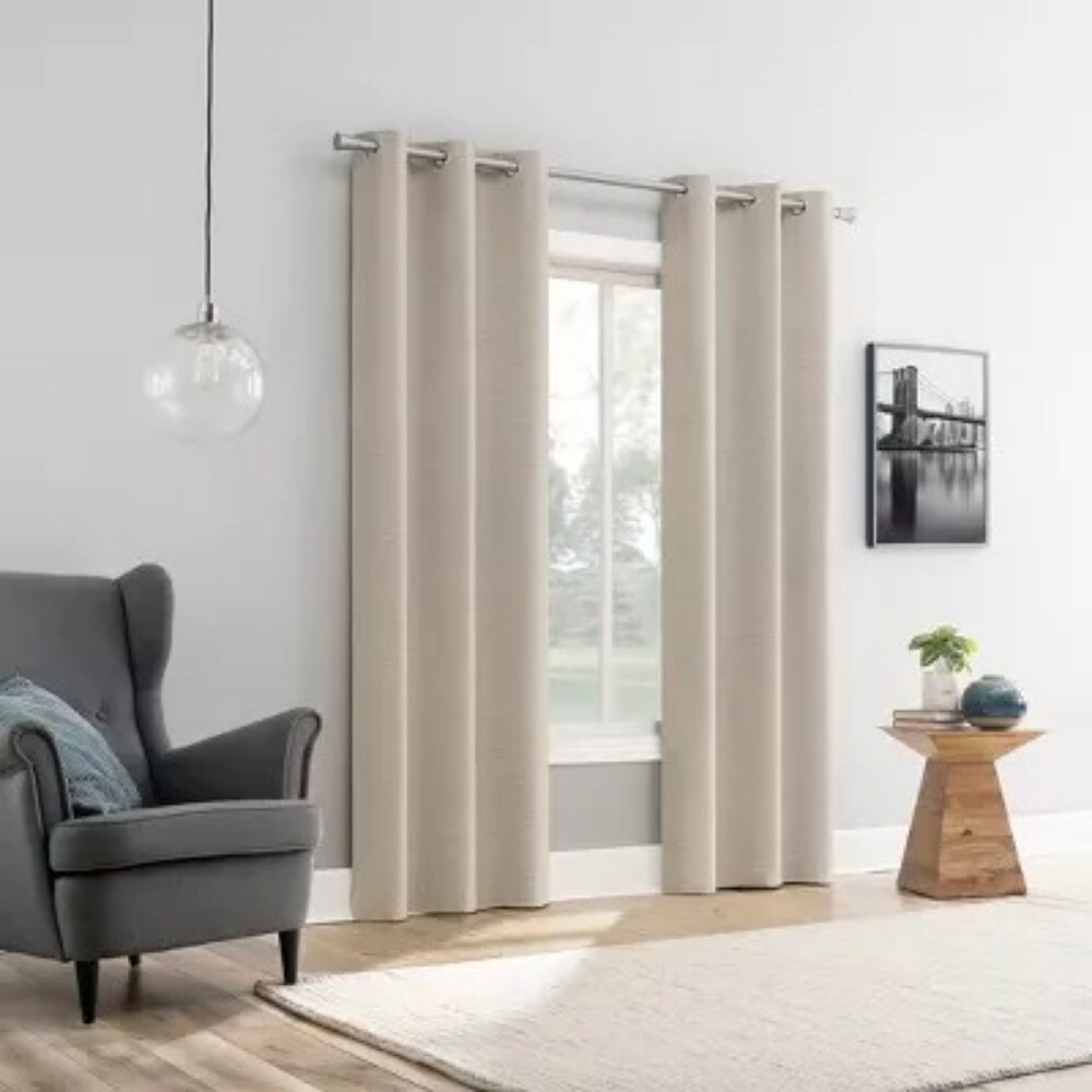 Highlights Blackout technology blocks out most unwanted light while enhancing privacy Energy efficient design reduces energy lost through your windows by up to 25% Thermal properties help keep summer heat and winter chill out of your home Noise reduction up to 25% helps you get a sounder, more uninterrupted sleep Built-in metal grommets fit curtain rods up to 1.5" in diameter Pair includes 2 panels. Measure carefully prior to purchase. Size 37"x84" Description Wylder Curtain Panel Pairs offer energy efficiency and elevated design with a strie texture complemented with a modern metal grommet top for easy hanging on a standard curtain rod up to 1.5" in diameter. Thermal Blackout Curtains are laboratory tested to block out most light, offer outside noise reduction by up to 25%, and decrease energy lost through your windows by up to 40%. Comfort is optimized with thermal properties that help keep summer heat and winter chill out of your home. Hang in your living room for enhanced privacy, or in your bedroom for a sounder, more uninterrupted sleep. Mount rods at least 2" above the window for maximum light blocking. Pair includes 2 navy blue panels, each measuring 37" width by 84" length. Measure carefully before selecting your desired size and quantity. Rod not included. Machine wash cold on gentle cycle. Use non-chlorine bleach when needed. Line Dry.