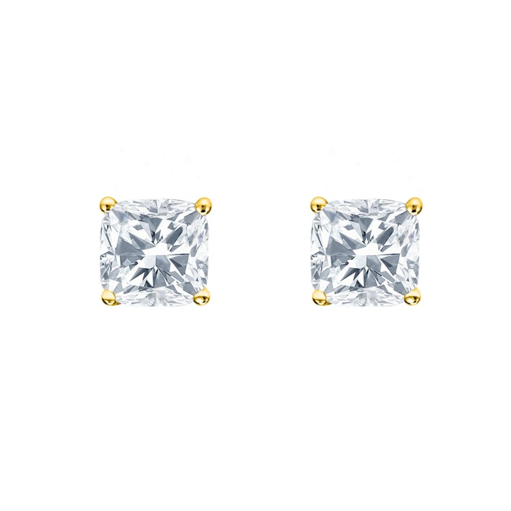 3.00 Carat Cushion Brilliant Cut Solitaire Stud Screw Back Martini Earrings in Solid 14K Yellow Gold These exquisite created diamond stud ear rings are crafted out of solid 14k yellow gold and brilliant man-made diamonds. This design of stud earrings is one of the most desired and classy of all. The diamonds are set in a unique, secure, 4-prong designer style setting. The diamonds emit every shade of light that a natural diamond would emit. The radiance and fire of these created diamonds is equivalent if not superior to a natural diamond of a VVS1 Clarity, D Color, Excellent Cut. Brand --> Shine Brite With A Diamond Total Carat Weight (TCW) --> 3.00 Carat (1.50 Ct. (Approx. 7.5 mm) each) Metal --> Real , Genuine , Solid Yellow Gold Metal Purity --> 14K (585) Gem Type --> Created Diamond Design --> Studs Main Stone Shape --> Cushion, Brilliant Cut Diamond Color --> D Diamond Clarity --> VVS1 Setting --> 4-Prong Martini Type of Post or Back --> Screw Back Number of Stones --> 2 Country of Manufacture --> United States Origin of Stones --> Created Diamond Availability --> Limited Quantity EVERY GEMSTONE COMES WITH A LIFETIME GUARANTEE! Our created diamonds are guaranteed to last a lifetime or we will replace them free of charge! So What Will I Be Receiving in the Mail? A Pair of Genuine Solid 14 Karat Yellow Gold Cushion Brilliant Cut Stud Earrings . An Elegant and Luxury Jewelry Box. Certificate of Appraisal with a Lifetime Warranty. REFUNDS We guarantee your satisfaction and offer a 30-day money-back return (or exchange) policy. If for ANY reason you are unsatisfied with your purchase, please contact us first before opening up a case or leaving negative/neutral feedback so that we could make things right! We are here to help YOU! SHIPPING All eligible items will ship free within 1 business day with USPS Priority Mail for expedited delivery. Please select the FedEx shipping options for even faster (overnight and 2-day) delivery. CONTACT US We're always available by e-mail through eBay messages 24 hours a day, 7 days a week. Please feel free to contact us anytime with any questions or concerns you may have.