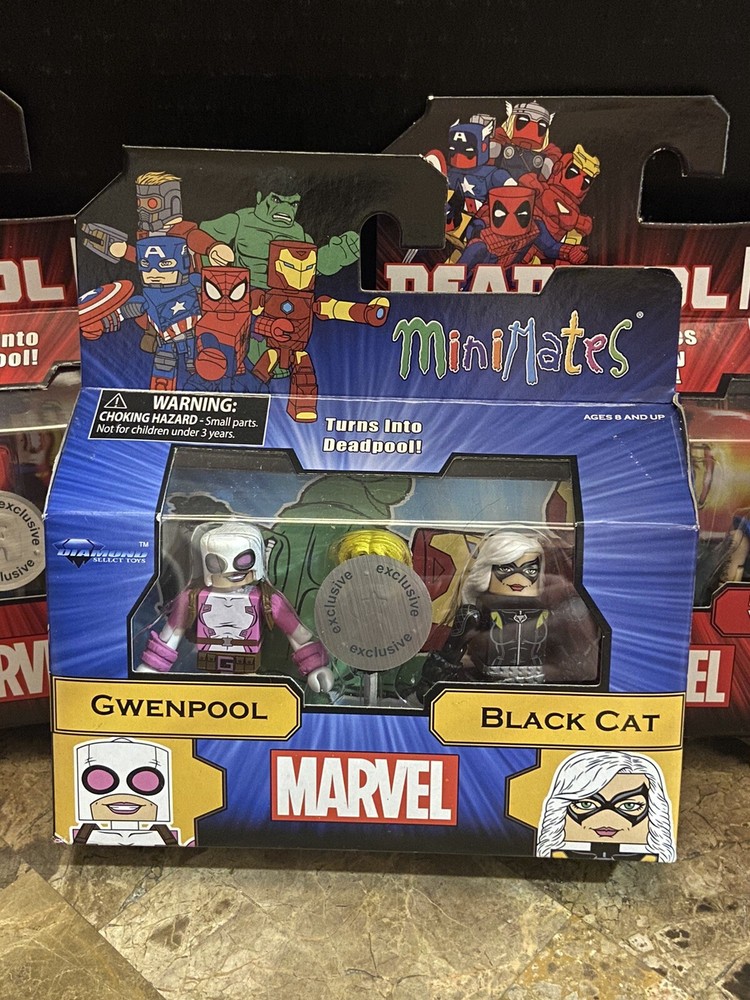Marvel Minimates Deadpool Wolverine 3 pack Debut and First Appearance, and Guenpool and Black Cat. All three packages are factory sealed and in very good condition. ...Selling policy. Returns accepted up to 30 days. Full refund less shipping provided item is returned in original condition. Return shipping is free! Feel free to ask any questions. I will also provide any further pictures if requested. ...All forms of payment accepted and I always ship the very next day Mon-Fri and occasionally same day if it’s early enough. ...I have 100% feedback and take care of every item I ship out. Please provide 5 star feedback or contact me If you have any issues and I will try to get it resolved. Combined shipping is offered on all items. Just send me a message on which items and I will invoice them with reduced shipping cost. ... Beginning April 1 - Nov 1 I will be back and forth with work and may not be able to ship the same day on early purchases but I will always be able to ship the very next day.