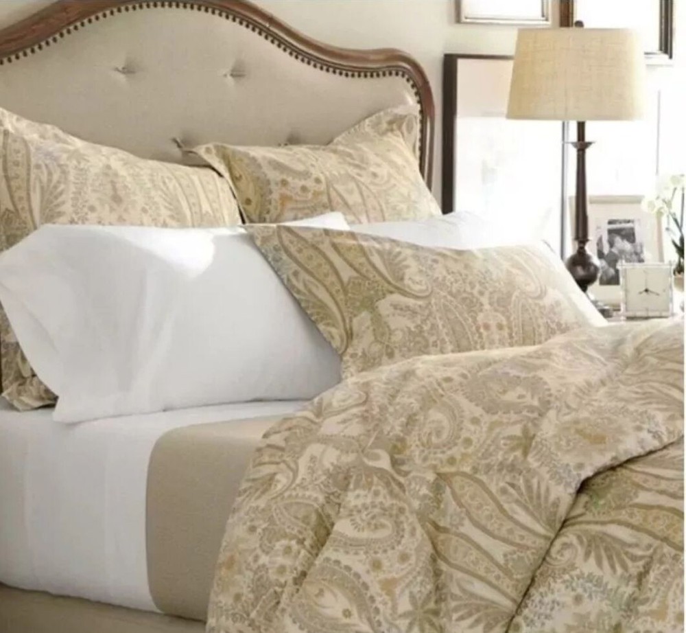 POTTERY BARN 3 ~ 26" X 26" BLYTHE PAISLEY EURO SHAMS BRAND NEW MULTI You are buying 3 BRAND NEW Pottery Blythe Paisley 26" x 26" Euro shams. The color is MULTI (lots of warm tones of Ivory, Gold and Blue). Pottery Barn describes this as , " This product is made of 100% cotton fiber. The manufacturing of this organic cotton fiber is a regulated process that uses no pesticides, synthetic fertilizers or fragrances . " DETAILS Made from 100% organic cotton. CARE Machine wash cold, gentle cycle Use non-chlorine bleach when needed. Tumble dry low, remove promptly. Warm iron as needed. PAYMENT METHOD Buy it now payment is required at checkout. SHIPMENT METHOD US only shipping is free. Items will be sent within one day of sale date. Returns are not accepted. I DO NOT MAKE OR ACCEPT "BEST OFFERS" SUCH INQUIRIES WILL GO UNANSWERED