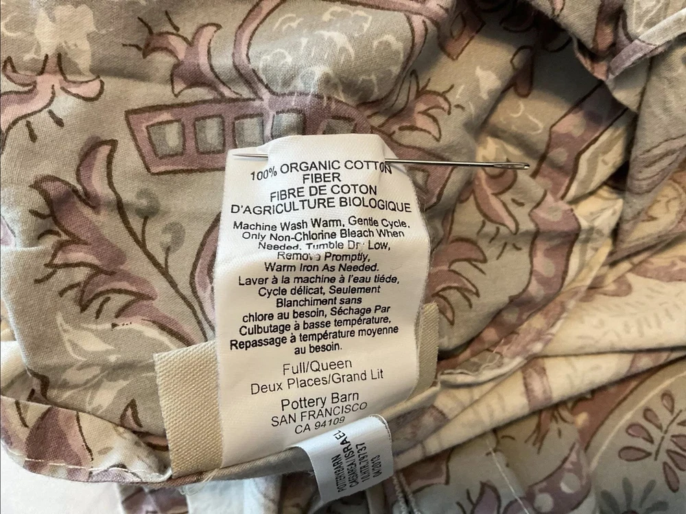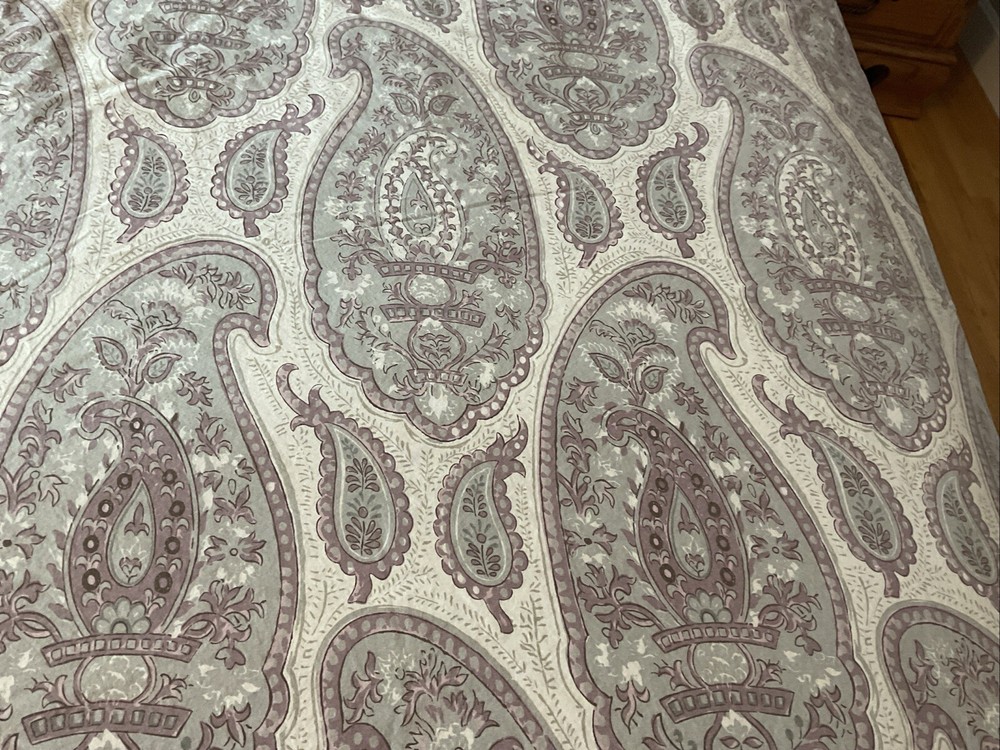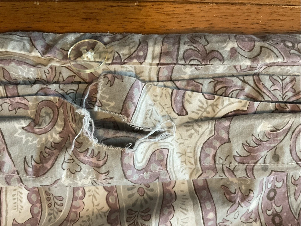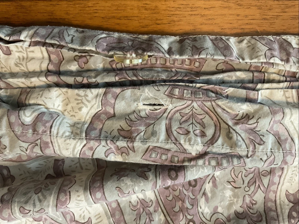 One button hole has rip - see photo # 8 Full/Queen: 88" l x 92" w