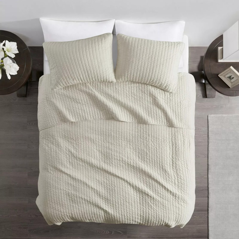 Elevate your bedroom with the Madison Park 3-piece reversible coverlet set, designed to bring a touch of designer luxury to any space. The set includes a full/queen-sized coverlet and two standard/queen-sized shams, featuring a stylish solid color pattern in a serene cream hue that complements a variety of decor themes and seasons. Crafted from 100% polyester, this coverlet set is machine washable for easy care and offers both comfort and durability. The rectangular shape and 90-inch dimensions provide ample coverage and a perfect fit for most queen-sized beds. Whether you're revamping your teenage bedroom or adding a sophisticated flair to your adult space, this coverlet set is versatile enough for all ages and designed to impress.