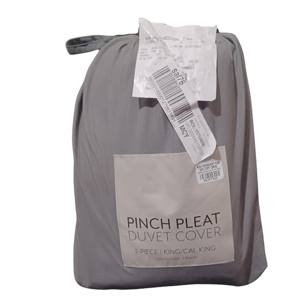 This item is a returned item directly from Macy's Department Store, new with original packaging and has a return tag attached. Please see photos before purchasing. Sold AS-IS ienjoy Home Home Collection Premium Ultra Soft 3 Piece Pinch Pleat Duvet Cover Set, King/California King Original Price: $140 Enjoy the ultimate comfort and elegance with the 3-piece pinch pleat solid duvet cover set by ienjoy Home. Both the duvet cover and the matching shams are crafted with the finest microfiber that's softness is unsurpassed. This duvet cover set comes in 2 gorgeous colors guaranteed to match any style. Product Features: Bed size - king/california king Duvet cover dimensions - 98" L X 112" W King shams dimensions - 36" L x 20" W, 2" flange Product weight - 4 lbs Set includes - 1 duvet cover, 2 king shams Made with the highest quality imported microfiber yarns Superior weave for durability and a buttery-soft feel, zippered closure Made to be less allergic for sensitive skin Wicking properties keep you relaxed and dry Pinch pleat design 30-days manufacturer's warranty against defects Microfiber Machine Wash Cold, Tumble Dry Low, Do Not Bleach, Iron or Use Fabric Softener, Fade and Wrinkle Resistant Imported Request warranty information PLEASE READ CONDITIONS BELOW BEFORE PURCHASING: By purchasing this item, the buyer agrees to item condition as noted in the description. This product is sold AS-IS. This item may be an open box product sourced from high-end department store pallets. It may have been a customer return, store stock or display item. While it is in new condition and functions as intended, the original packaging may show signs of wear, or the item may have been repackaged. Important: All items are sold as-is with no guarantees beyond the description provided. Refunds will only be considered if the buyer provides clear photographic evidence that the item received does not match the listing description. In such cases, the buyer is responsible for return shipping costs unless otherwise agreed upon in advance.
