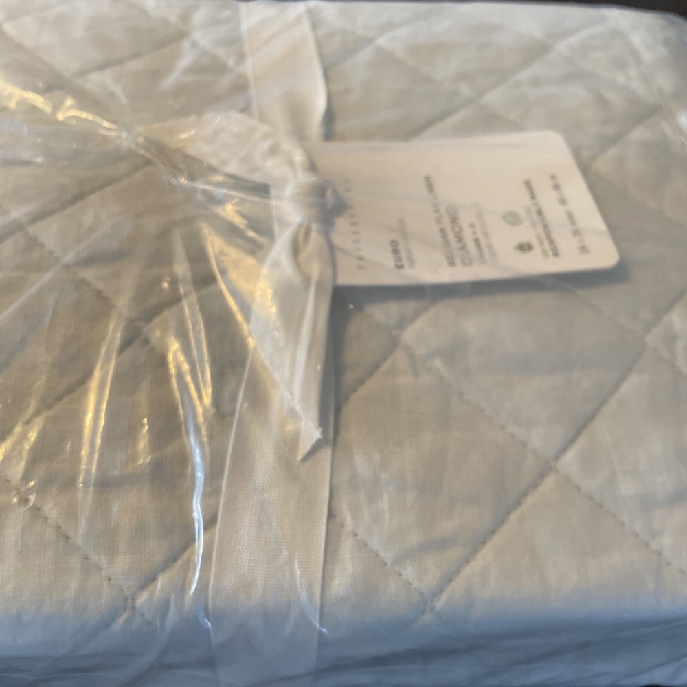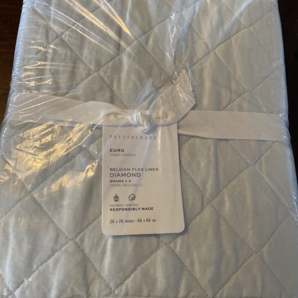 Enhance the luxurious look of your bedroom with this stunning Pottery Barn Euro Sham Set. Crafted from 100% Belgian Flax Linen, this set is perfect for adding a touch of modernity to your bedding collection. The Diamond pattern and Square shape of these shams give a nature-inspired, plush look to your room, while the Blue Frost color gives a serene ambiance. These Pillow Shams are machine washable and tumble dryable, making them easy to care for. The Envelope Closure Type ensures that your pillow stays in place and the flange provides extra elegance. This Pottery Barn BELGIAN FLAX LINEN DIAMOND Euro Sham Set/3 is ideal for adults and can beautifully complement any modern decor.