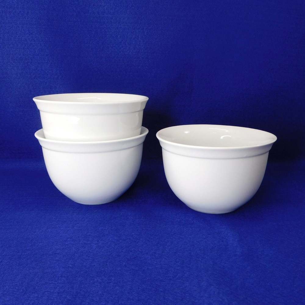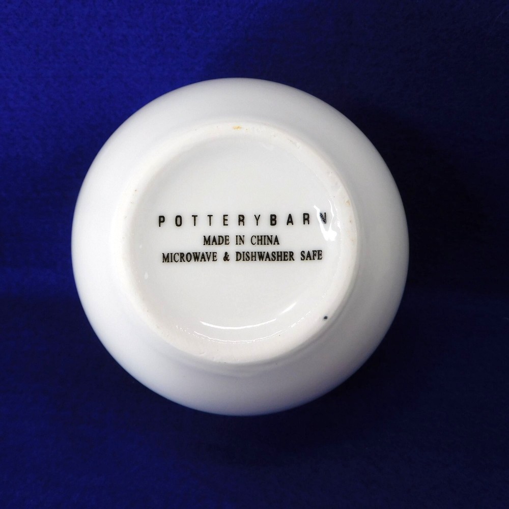 Durable ceramic bowls ideal for serving soups, cereals, or snacks. Microwave and dishwasher safe for easy use and cleaning. • Suppertime line from Pottery Barn • Classic white finish complements any decor • Dimensions: Top Diameter = 5.75", Height = 3.75" Excellent Condition. No flaws noted 09045023-156