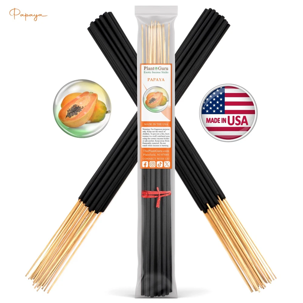 Jumbo Incense Sticks 19" Long Hand Dipped - Made In the USA 30 Sticks per Bundle Choose Fragrance From Drop Down Menu !!! PLEASE READ !!! BUY 4 GET 2 FREE Must ADD all 6 items to cart to qualify for this promotion. You will only be charged for 4 at checkout. If you only add 4 to the cart you will only receive 4 MUST ADD 6 TO CART TO QUALIFY !!! CLICK ON ANY IMAGE BELOW TO VIEW MORE DEALS AND SAVINGS !!! ⭐ ⭐ TOP 10 BEST SELLERS ⭐⭐ ⭐ ⭐ TOP 5 FRUIT SCENTS ⭐⭐ ⭐ ⭐ TOP 5 FLORAL SCENTS ⭐⭐ ⭐ ⭐ EARTH & WOOD ⭐⭐ ⭐ ⭐ EXOTICS SCENTS ⭐⭐ ⭐⭐⭐ HOLIDAY SCENTS ⭐⭐⭐ ⭐ ⭐ BOGO LISTINGS ⭐ ⭐ 500 - 11" Sticks / 100 - 11" Sticks / 50 - 11" Sticks / 25 - 11" Sticks 30 - 19" Sticks / 15 - 19" Sticks / 2" Backflow Cones / 1" Charcoal Cones ⭐ ⭐ CUSTOM SET ⭐ ⭐ Build Your Own Custom Set ⭐ ESSENTIAL OILS & FRAGRANCE OILS ⭐ OVER 250 SCENTS ⭐ MADE IN THE USA - Hand dipped daily using premium grade fragrance Oils. 30 sticks per bundle - Each stick is 19'' inches long and made of high-quality wood punk. Hand dipped in premium grade fragrance oils for 48 hours. Burns time is approximately 2 to 3 hours. CLEAN BURNING - NO toxic fumes - NO Burnt after smell – Nothing but clean premium smooth aroma. Fill your home with a delightful unique aroma and guests will immediately ask what's that amazing smell. Add these to your home décor accessories, your special quiet space, or just keep them on hand to burn any time. ONE STOP FRAGRANCE SHOP – Here at Plant Guru we carry a wide variety of pure essential oils, fragrance oils, incense and resins. WHY SHOP ANYWHERE ELSE!!! We Also Carry Undiluted Fragrances Oils? Click on the link below to view our full list of fragrance oils L I N K > > > Catalog #1 (A - K) L I N K > > > Catalog #2 (L - Z) L I N K > > > FRAGRANCE OILS GALLON 8 lbs. BULK WHOLESALE L I N K > > > VIEW OUR FULL LINE OF FRAGRANCE OILS HERE Check out our store for Pure Aromatherapy Essential Oils LINK >>> 100% Pure Essential Oils, Therapeutic Grade. LINK >>> Pure Essential Oil Blends LINK >>> Carrier Oils / Pure Plant Oils LINK >>> 100% Pure Butters Why Plant Guru ? We source the finest quality ingredients and supplies from ethical producers worldwide. We supply all of our products at market leading prices with no gimmicks. We never sacrifice quality for price. The customer is always right and should always be treated the way our customer service reps would like to be treated. Appreciate every customer, large and small and do your best to service them. About Plant Guru Our business was born online offering quality essential oils at a fair price. No advertising, No marketing plan, No multi pyramid pricing. This allows us to pass on a huge savings to our customers. We provide quality essential oils at the most affordable prices. From our experience if you stick to your principles, the business will take care of itself. These beliefs have allowed us to do great things. Our Mission Plant Guru is a small family ran business with a passion for essentials. "Our business revolves round this passion" As essential oil users in our personal life, We were tired of the multi marketing companies. The prices for a small 15ml. bottle were getting is ridiculous. Everyone should be able to experience the healing power of essential oils. Shipping We ship within one business days of payment, usually sooner. Standard Shipping takes between 3-5 business days. We use a selection of shipping services such as UPS, FedEx, USPS etc. Expedited shipping takes between 2-3 business days. PLEASE PROVIDE A PHYSICAL ADDRESS. Feedback Positive feedback is provided on every transaction you make with us and we ask that you do the same. Once we have been notified that you have received your item and are happy with it, we will post you a feedback. If for any reason, if you decide to leave a neutral or negative feedback, please contact us first and let us mutually resolve it. It is impossible to address issues if we do not know about them! We care for your satisfaction and will make sure that you are happy with the transaction to post us your FIVE STAR ratings in all areas.