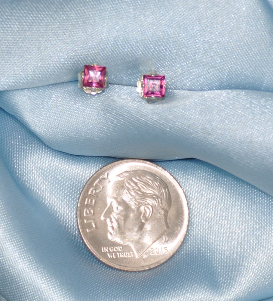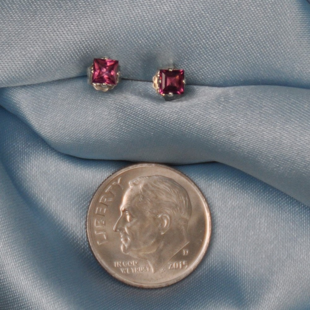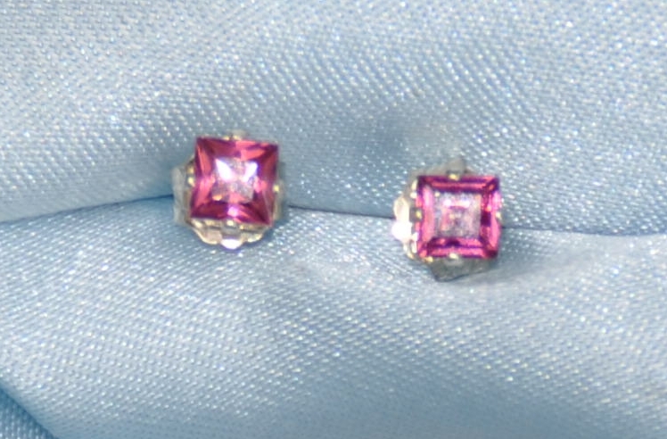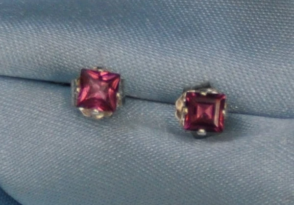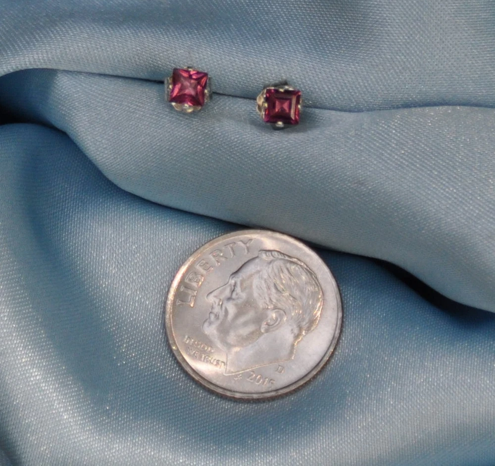 WHY BUY PLATED AND CZ'S WHEN YOU CAN OWN THE REAL THING?????? THESE ARE GENUINE RASPBERRY PINK AFRICA RHODOLITE GARNETS AND SOLID STERLING SILVER----NO CZ'S --NOTHING PLATED. A PAIR OF BEAUTIFUL PETITE SQUARE CUT INTENSE RASPBERRY PINK AFRICA RHODOLITE GARNET EARRINGS. EACH STONE IS 3.0-3.50 MM. THESE STONES ARE VERY BEAUTIFUL. I ALSO HAVE SEVERAL OTHER ITEMS LISTED AND WOULD COMBINE SHIPPING. I SHIP TO THE UNITED STATES ONLY AND ACCEPT PAY PAL FOR PAYMENT. I WILL USE THE INTERNATIONAL SHIPPING PROGRAM FROM E-BAY... THESE ARE VERY NICE PIECES AND YOU WILL ENJOY HAVING THEM IN YOUR COLLECTION AND WEARING THEM. T HESE ARE GENUINE RHODOLITE GARNET STONES AND SOLID STERLING SILVER--- -NO CZ'S --NOTHING PLATED. THIS IS A VERY GOOD VALUE AND YOU WILL BE PLEASED WITH YOUR PURCHASE. I TAKE PRIDE IN PROVIDING QUALITY PRODUCTS AT AFFORDABLE PRICES. BEAUTIFUL STUDS CHILDREN LOVE THEM. GARNET IS JANUARY'S BIRTHSTONE Garnet history Garnet is the birthstone for January and the stone that celebrates the 2nd anniversary of marriage. The name “garnet” comes from the Latin word “Garanatus,” meaning “seedlike,” in reference to a pomegranate. This reference makes sense as small garnets look like the bright red seeds you find inside in a pomegranate. The garnet has been a popular gem throughout history. Garnets were found as beads in a necklace worn by a young man in a grave that dates back to 3000 B.C. This is proof of the hardness and durability of the stone. The King of Saxony is said to have had a garnet of over 465 carats. Plato had his portrait engraved on a garnet by a Roman engraver. Bohemia, now a part of Czechoslovakia, was once a tremendous source of garnet, and at one time, cutting, polishing, and mounting garnets was a very rich industry in that country. Many Bohemian castles and churches had magnificent interiors decorated with garnet. Bohemian garnets are famous even today, known for their small but beautiful stones set close to each other resembling a pomegranate. Garnet jewelry is still found in the Czech Republic, with the stones still arranged in the traditional, tightly joined way. This ensures that the attraction of the classical Garnet pieces is caused only by the beauty of its stones. The Anglo-Saxons were also fond of garnets. Their jewelry was set with garnets mounted in many forms. Garnets were highly popular in Europe, in 18th and 19th centuries. They were frequently used for jewelry in the Victorian times. In Old Spain, the pomegranate was a favorite, and as a result of this, so was the garnet. In Spanish astrology, the garnet once represented the sun. In ancient times, garnet was known as ”Carbuncle,” which relates to the color and refers to a boil or blister. This name was also applied to other red stones, but to the garnet in particular. Webster’s Collegiate Dictionary describes the garnet as “a brittle and more or less transparent red silicate mineral that has a vitreous luster, occurs in many crystals but also in massive forms and in grains, is found commonly in gneiss and mica schist, and is used as a semiprecious stone and as an abrasive.” Garnet is one of the most plentiful stones. There is hardly any other gem that unites such a broad spectrum of color and luster, as well as rarity and size of widely varying gemstones. For example, the precious green uvarovite garnet from the Urals, is an almost priceless gemstone due to the fact that it only forms in fairly large crystals. Garnet is actually a group name for the silicate minerals almandine, pyrope, spessartine, grossular, andradite, mozambique and uvarovite, so the garnet is a far more diverse gem than its name suggests. All of these garnet minerals share similar cubic crystal structure and chemical composition. Gem quality garnet occurs in many countries, and beautifully formed crystals have been prized for over 5000 years. Throughout time, there have been many ancient traditions and legends about the garnet. In medieval times, the stones were thought to cure depression, protect against bad dreams, and relieve diseases of the liver, as well as hemorrhages. According to legend, Noah used a finely cut, glowing garnet to illuminate the ark during those dark wet days and nights. Hebrew writers include the garnet as one of the twelve gems in Aaron’s breastplate. Christian tradition considered the blood-red garnet as a symbol of Christ’s sacrifice. The Koran holds that the garnet illuminates the Fourth Heaven of the Moslems. The Greeks said it guarded children from drowning. It was also thought to be potent against poisons. In Greek mythology, a pomegranate is referenced as a gift of love and is associated with eternity. Nowadays, Garnet remains as a gift of love and is traditionally given for the 19th anniversary of marriage. It may also be used as a gift for two-year and six-year anniversaries. Moreover, Garnet is symbolic of a quick return and separated love, since Hades had given a pomegranate to Persephone before she left him to ensure her speedy return. Therefore, Garnet may be given to a beloved before embarking on a trip, as it is believed to heal the broken bonds of lovers. It has been said that a garnet engraved with the figure of a lion is an all around effective charm that will protect and preserve health, cure the wearer of all disease, bring him honors, and guard him from all the possible perils in traveling. It was also said to warn the wearer of approaching danger and was long ago carried as a protective talisman. One writer wrote that if a garnet loses its luster and shine, it is a sure sign of coming disaster. There may be an affinity between garnets and the warrior tradition. It is recorded that garnets have been used as pellets by a group of native people of India, shot from bows. The tribal belief was that the stone would inflict wounds, which would be particularly bloody. The history of garnet’s ability to bring about transformation is found in many books. Thelma Isaacs writes
