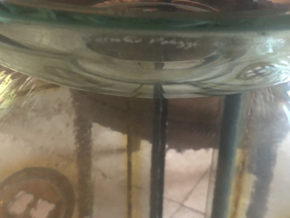 3/4” thick x 13” diameter green glass w/ 1” bevel By Salvatore Polizzi...