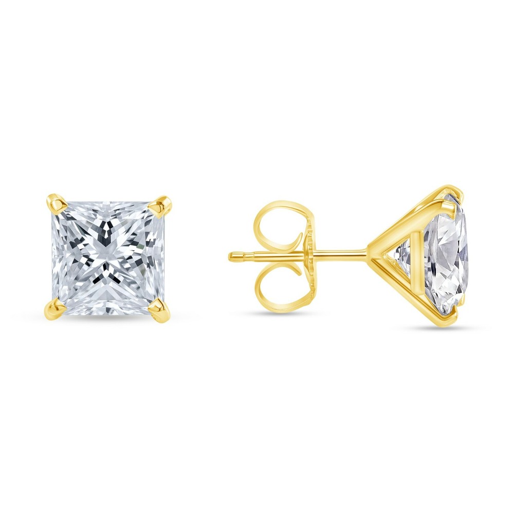 3.50 Carat Princess Cut Studs Push Back Martini Earrings in Solid 14K Yellow Gold These exquisite simulated diamond stud ear rings are crafted out of solid 14k yellow gold and brilliant man-made diamonds. This design of stud earrings is one of the most desired and classy of all. The diamonds are set in a unique, secure, 4-prong martini style setting. The diamonds emit every shade of light that a natural diamond would emit. The radiance and fire of these created diamonds is equivalent if not superior to a natural diamond of a VVS1 Clarity, D Color, Excellent Cut. Brand --> Shine Brite With A Diamond Total Carat Weight (TCW) --> 3.50 Carat (1.75 Ct. (Approx. 7.75 mm) each) Metal --> Real , Genuine , Solid Yellow Gold Metal Purity --> 14K (585) Gem Type --> Man-Made/Simulated Diamond Design --> Studs Main Stone Shape --> Princess, Brilliant Cut Diamond Color --> D Diamond Clarity --> VVS1 Setting --> 4-Prong Martini Style Type of Post or Back --> Push Back Number of Stones --> 2 Country of Manufacture --> United States Origin of Stones --> Man-Made or Simulated Diamond Availability --> Limited Quantity EVERY GEMSTONE COMES WITH A LIFETIME GUARANTEE! Our simulated diamonds are guaranteed to last a lifetime or we will replace them free of charge! So What Will I Be Receiving in the Mail? A Pair of Genuine Solid 14 Karat Yellow Gold Princess Brilliant Cut Stud Earrings . An Elegant and Luxury Jewelry Box. Certificate of Appraisal with a Lifetime Warranty. REFUNDS We guarantee your satisfaction and offer a 30-day money-back return (or exchange) policy. If for ANY reason you are unsatisfied with your purchase, please contact us first before opening up a case or leaving negative/neutral feedback so that we could make things right! We are here to help YOU! SHIPPING All items will ship free within 1 business day with USPS Priority Mail for expedited delivery. Please select USPS Express Mail for RUSH Delivery. CONTACT US We're always available by e-mail through eBay messages 24 hours a day, 7 days a week. Please feel free to contact us anytime with any questions or concerns you may have.