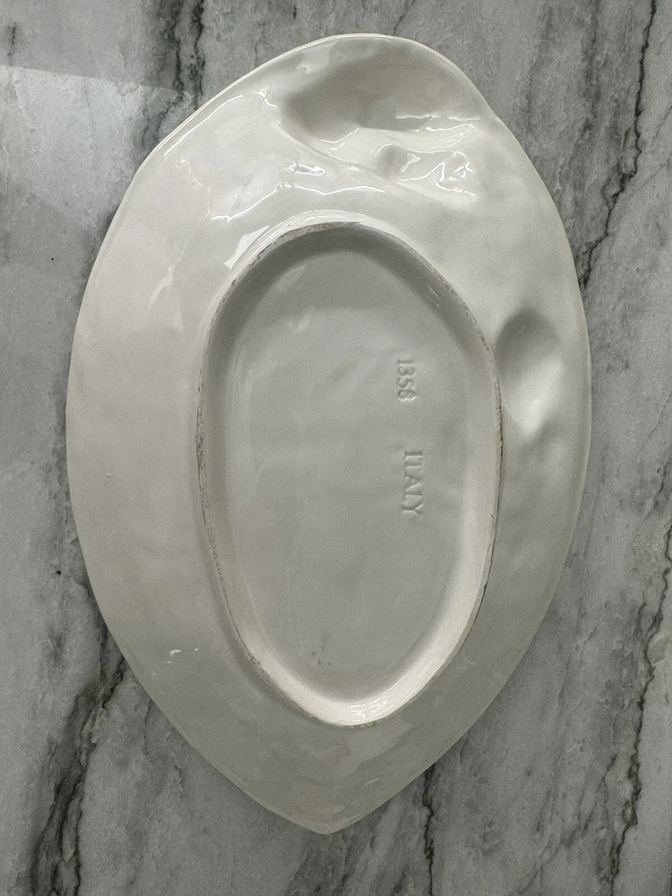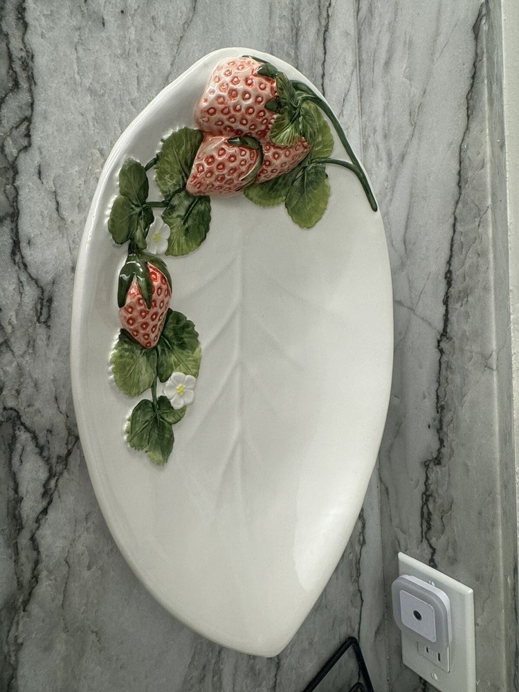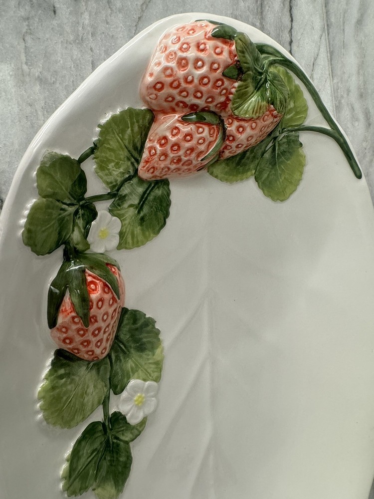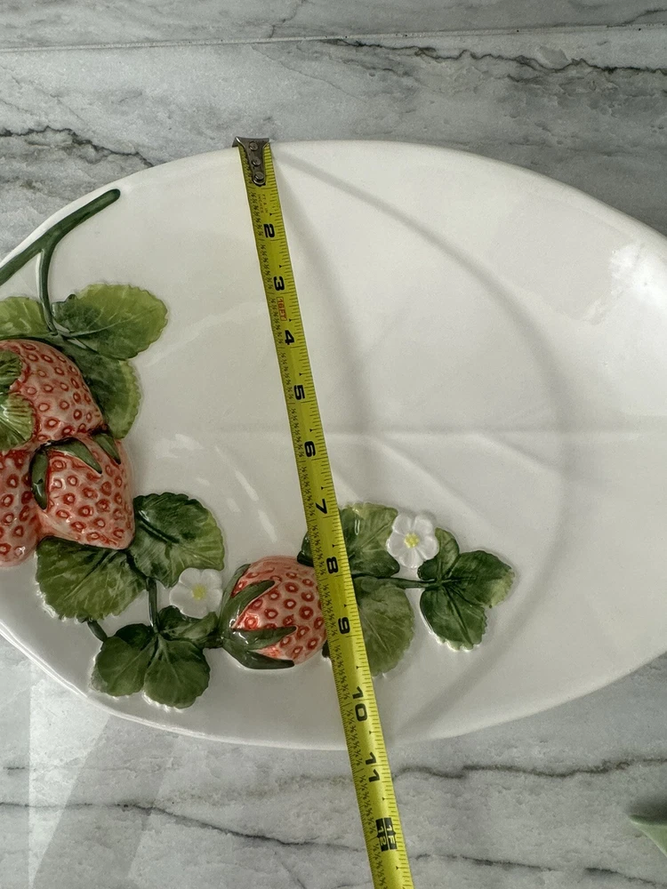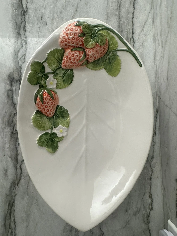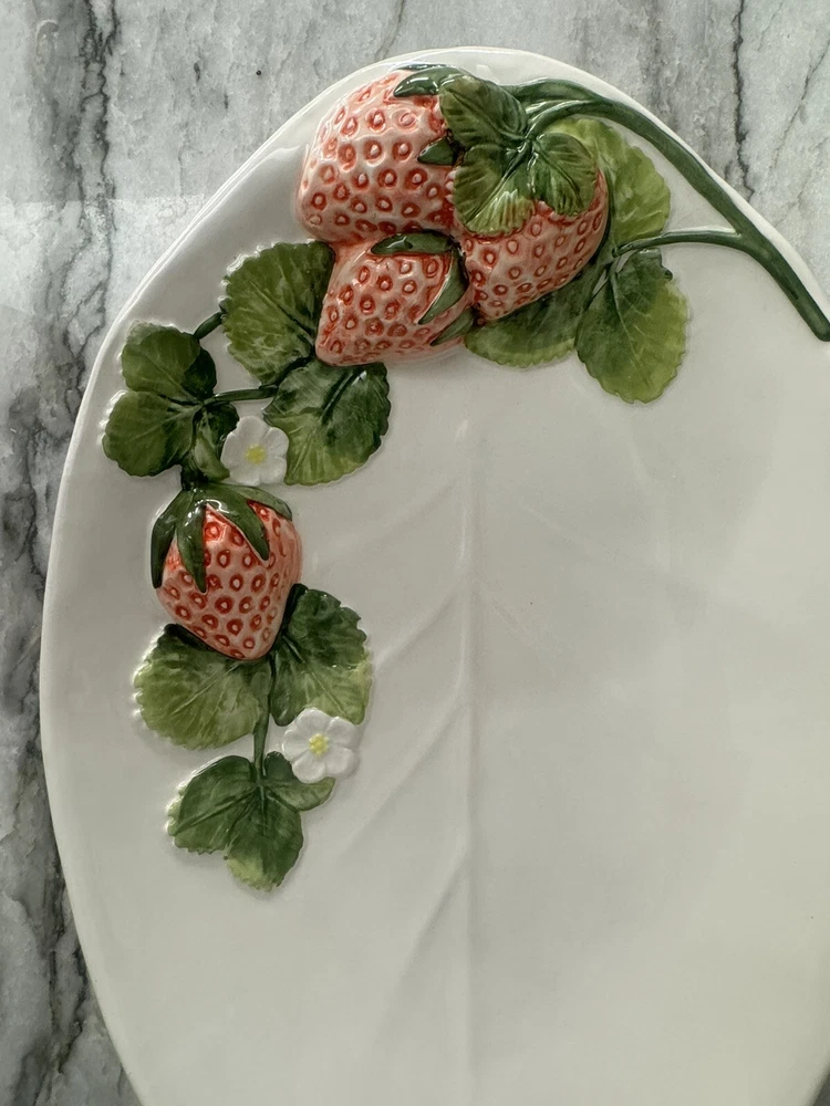 Add a touch of vintage charm to your servingware collection with this stunning teardrop-shaped serving bowl, adorned with hand-painted strawberries. Crafted from high-quality ceramic, this one-of-a-kind bowl is perfect for all occasions, from intimate family dinners to lavish gatherings. The glossy white finish and intricate strawberry pattern make this bowl a true work of art, showcasing the skilled craftsmanship of Italian art pottery. This unique mid-century modern piece is a true collector's item, produced in the heart of Italy using traditional studio techniques. Its delicate shape and intricate design add a touch of elegance to any table setting, while its durable construction ensures it will last for generations to come. Hand wash only care is recommended to maintain its beauty and ensure its longevity. 1358 Italy