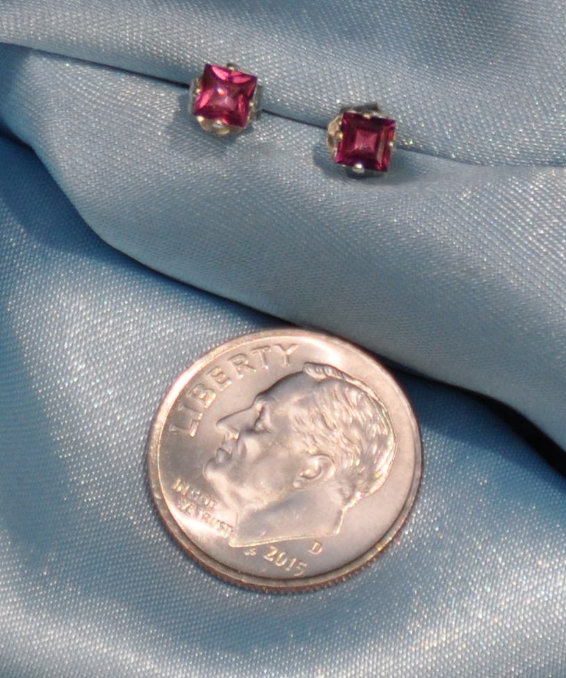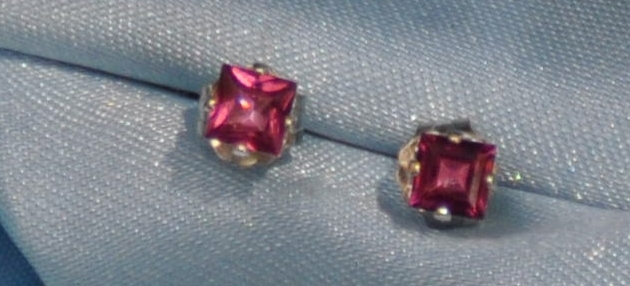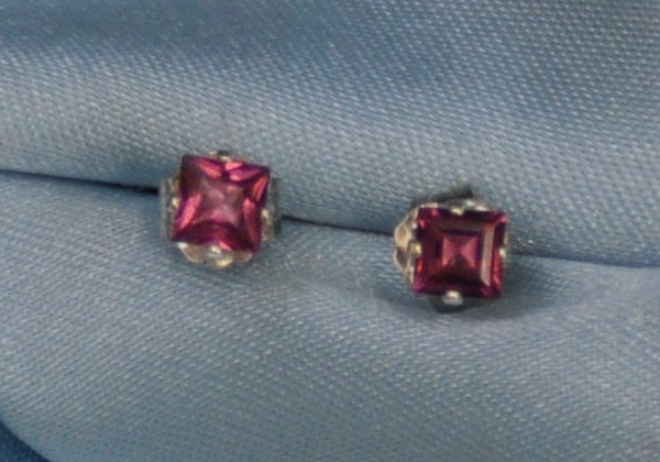 WHY BUY PLATED AND CZ'S WHEN YOU CAN OWN THE REAL THING?????? THESE ARE GENUINE RED GARNETS GARNETS AND SOLID STERLING SILVER----NO CZ'S --NOTHING PLATED. A PAIR OF BEAUTIFUL PETITE SQUARE CUT BEAUTIFUL RED GARNET EARRINGS. EACH STONE IS 3 MM. THESE STONES ARE VERY BEAUTIFUL. I ALSO HAVE SEVERAL OTHER ITEMS LISTED AND WOULD COMBINE SHIPPING. I SHIP TO THE UNITED STATES ONLY AND ACCEPT PAY PAL FOR PAYMENT. I WILL USE THE INTERNATIONAL SHIPPING PROGRAM FROM E-BAY... THESE ARE VERY NICE PIECES AND YOU WILL ENJOY HAVING THEM IN YOUR COLLECTION AND WEARING THEM. T HESE ARE GENUINE RHODOLITE GARNET STONES AND SOLID STERLING SILVER--- -NO CZ'S --NOTHING PLATED. THIS IS A VERY GOOD VALUE AND YOU WILL BE PLEASED WITH YOUR PURCHASE. I TAKE PRIDE IN PROVIDING QUALITY PRODUCTS AT AFFORDABLE PRICES. BEAUTIFUL STUDS CHILDREN LOVE THEM. GARNET IS JANUARY'S BIRTHSTONE Garnet history Garnet is the birthstone for January and the stone that celebrates the 2nd anniversary of marriage. The name “garnet” comes from the Latin word “Garanatus,” meaning “seedlike,” in reference to a pomegranate. This reference makes sense as small garnets look like the bright red seeds you find inside in a pomegranate. The garnet has been a popular gem throughout history. Garnets were found as beads in a necklace worn by a young man in a grave that dates back to 3000 B.C. This is proof of the hardness and durability of the stone. The King of Saxony is said to have had a garnet of over 465 carats. Plato had his portrait engraved on a garnet by a Roman engraver. Bohemia, now a part of Czechoslovakia, was once a tremendous source of garnet, and at one time, cutting, polishing, and mounting garnets was a very rich industry in that country. Many Bohemian castles and churches had magnificent interiors decorated with garnet. Bohemian garnets are famous even today, known for their small but beautiful stones set close to each other resembling a pomegranate. Garnet jewelry is still found in the Czech Republic, with the stones still arranged in the traditional, tightly joined way. This ensures that the attraction of the classical Garnet pieces is caused only by the beauty of its stones. The Anglo-Saxons were also fond of garnets. Their jewelry was set with garnets mounted in many forms. Garnets were highly popular in Europe, in 18th and 19th centuries. They were frequently used for jewelry in the Victorian times. In Old Spain, the pomegranate was a favorite, and as a result of this, so was the garnet. In Spanish astrology, the garnet once represented the sun. In ancient times, garnet was known as ”Carbuncle,” which relates to the color and refers to a boil or blister. This name was also applied to other red stones, but to the garnet in particular. Webster’s Collegiate Dictionary describes the garnet as “a brittle and more or less transparent red silicate mineral that has a vitreous luster, occurs in many crystals but also in massive forms and in grains, is found commonly in gneiss and mica schist, and is used as a semiprecious stone and as an abrasive.” Garnet is one of the most plentiful stones. There is hardly any other gem that unites such a broad spectrum of color and luster, as well as rarity and size of widely varying gemstones. For example, the precious green uvarovite garnet from the Urals, is an almost priceless gemstone due to the fact that it only forms in fairly large crystals. Garnet is actually a group name for the silicate minerals almandine, pyrope, spessartine, grossular, andradite, mozambique and uvarovite, so the garnet is a far more diverse gem than its name suggests. All of these garnet minerals share similar cubic crystal structure and chemical composition. Gem quality garnet occurs in many countries, and beautifully formed crystals have been prized for over 5000 years. Throughout time, there have been many ancient traditions and legends about the garnet. In medieval times, the stones were thought to cure depression, protect against bad dreams, and relieve diseases of the liver, as well as hemorrhages. According to legend, Noah used a finely cut, glowing garnet to illuminate the ark during those dark wet days and nights. Hebrew writers include the garnet as one of the twelve gems in Aaron’s breastplate. Christian tradition considered the blood-red garnet as a symbol of Christ’s sacrifice. The Koran holds that the garnet illuminates the Fourth Heaven of the Moslems. The Greeks said it guarded children from drowning. It was also thought to be potent against poisons. In Greek mythology, a pomegranate is referenced as a gift of love and is associated with eternity. Nowadays, Garnet remains as a gift of love and is traditionally given for the 19th anniversary of marriage. It may also be used as a gift for two-year and six-year anniversaries. Moreover, Garnet is symbolic of a quick return and separated love, since Hades had given a pomegranate to Persephone before she left him to ensure her speedy return. Therefore, Garnet may be given to a beloved before embarking on a trip, as it is believed to heal the broken bonds of lovers. It has been said that a garnet engraved with the figure of a lion is an all around effective charm that will protect and preserve health, cure the wearer of all disease, bring him honors, and guard him from all the possible perils in traveling. It was also said to warn the wearer of approaching danger and was long ago carried as a protective talisman. One writer wrote that if a garnet loses its luster and shine, it is a sure sign of coming disaster. There may be an affinity between garnets and the warrior tradition. It is recorded that garnets have been used as pellets by a group of native people of India, shot from bows. The tribal belief was that the stone would inflict wounds, which would be particularly bloody. The history of garnet’s ability to bring about transformation is found in many books. Thelma Isaacs writes that “garnets used for healing were usually almand