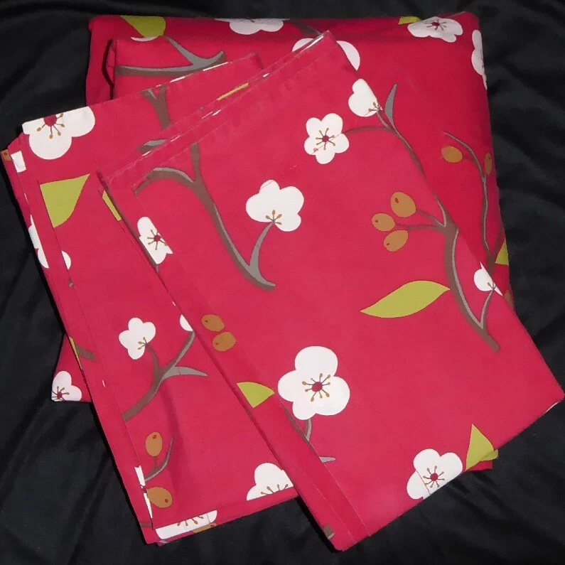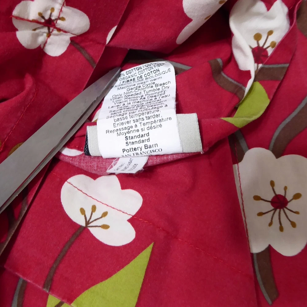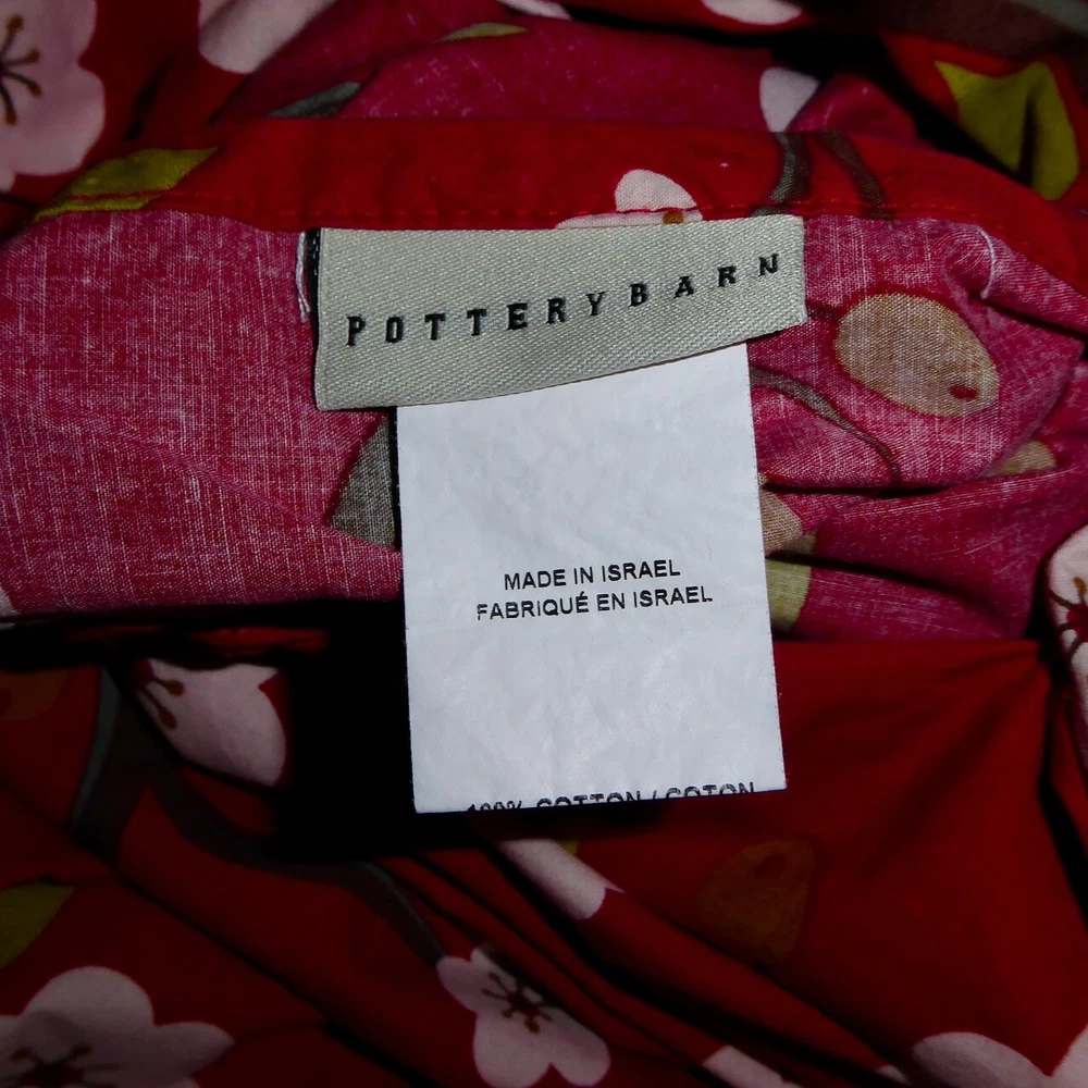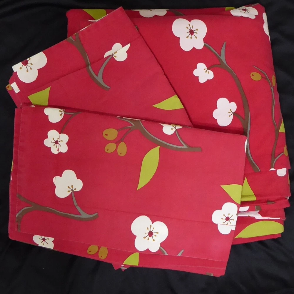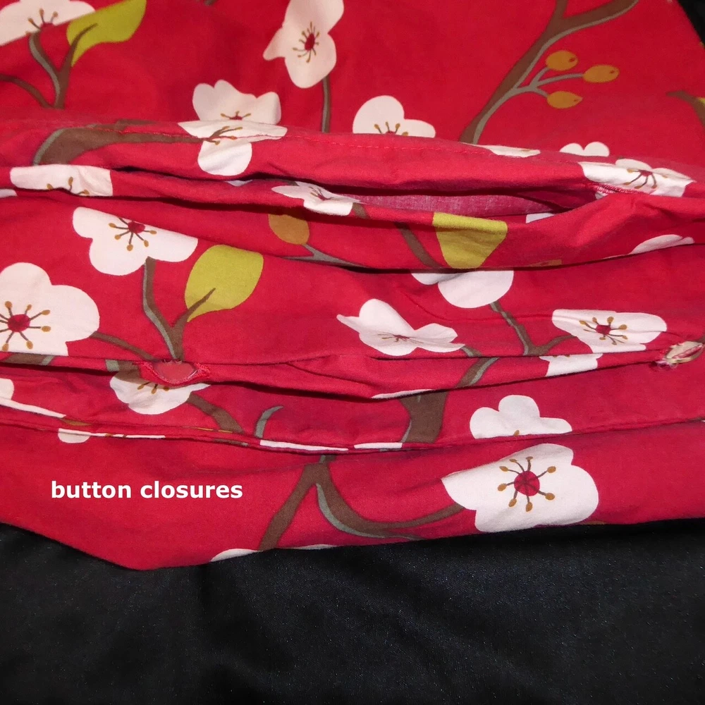 Gently used Pottery Barn cherry blossom queen duvet set Includes duvet and two standard (26" x 20") shams Very good condition with mild fade/wear to fabric 100% cotton Duvet has button closures Non-smoking home Combined shipping All descriptions and images ©MyCarousel. Use of these descriptions or photographs is prohibited.
