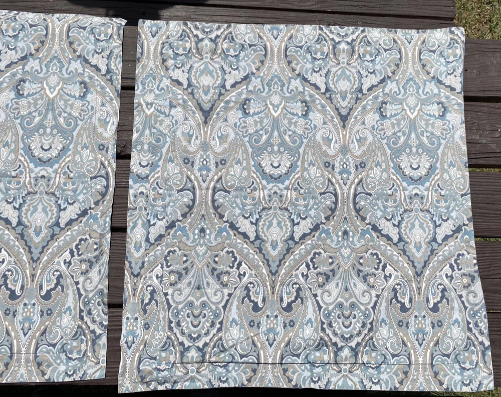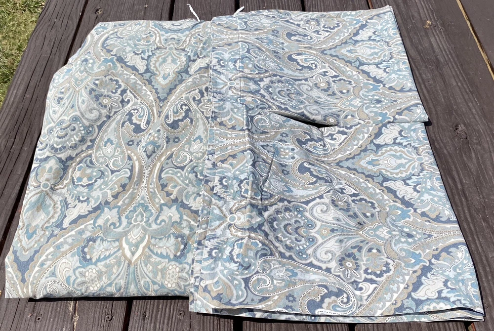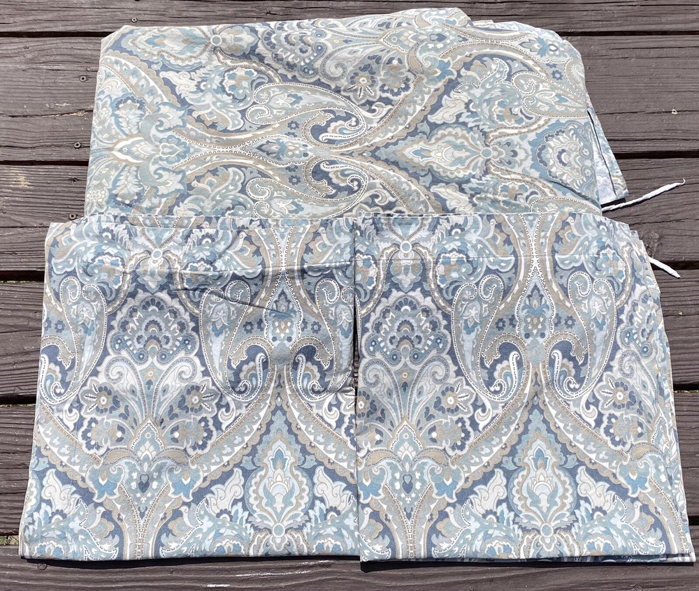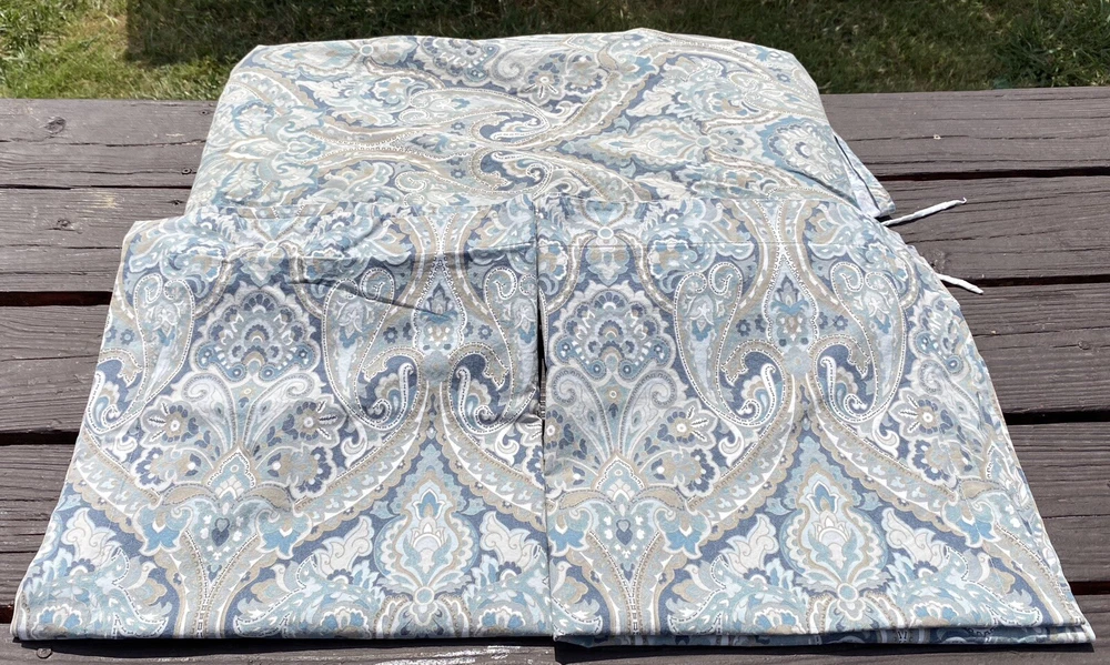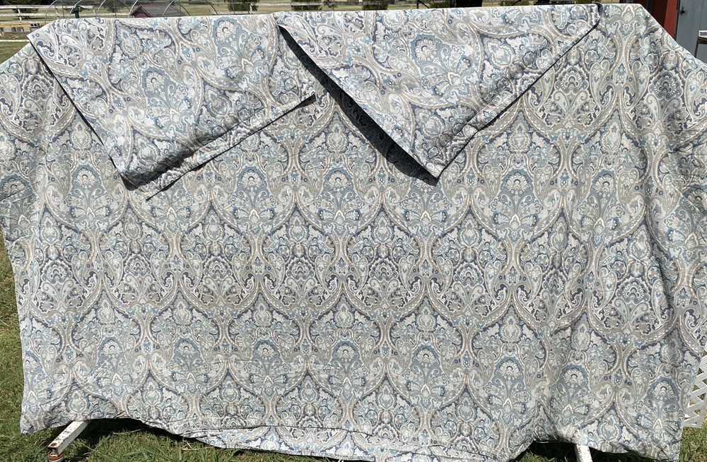 3Pc Pottery Barn King Duvet Cover + 2 Euro Pillow Shams 100% COTTON (5% organic) McKenna Blue Grey Paisley Good Condition. No rips or tears. Overall fade. Separately listed are more duvets/shams in this Mckenna pattern with less fade in Full/Queen size. For more PB,… Please visit our ebay store Earthly Home. https://www.ebay.com/str/earthlyhome The seller will choose shipping method. Shipments to PO Boxes may increase shipping costs. Please see all photos for condition. Thank you. )#@$