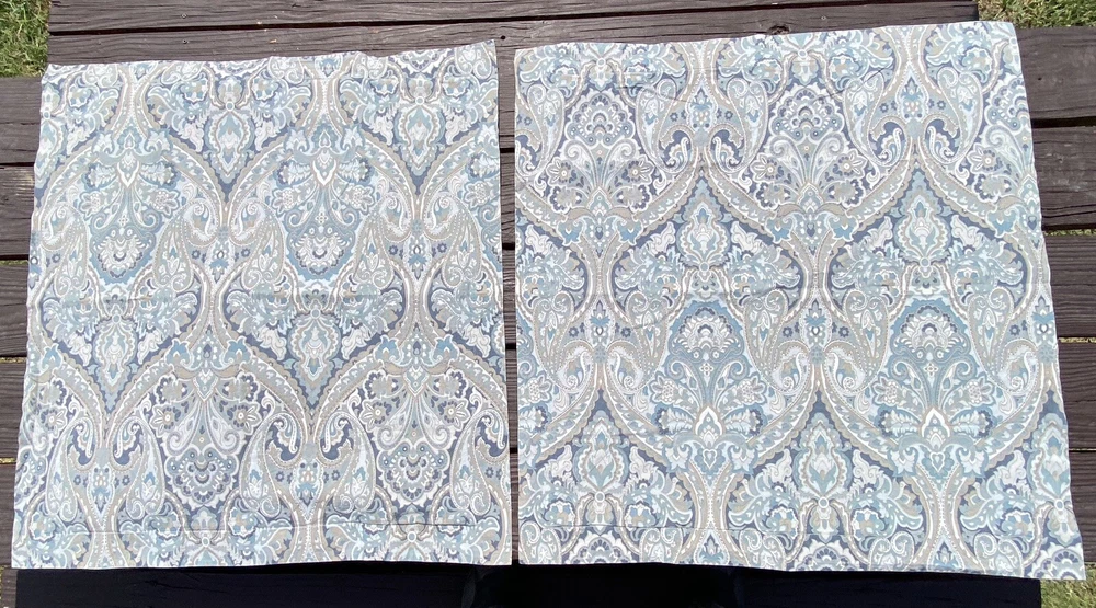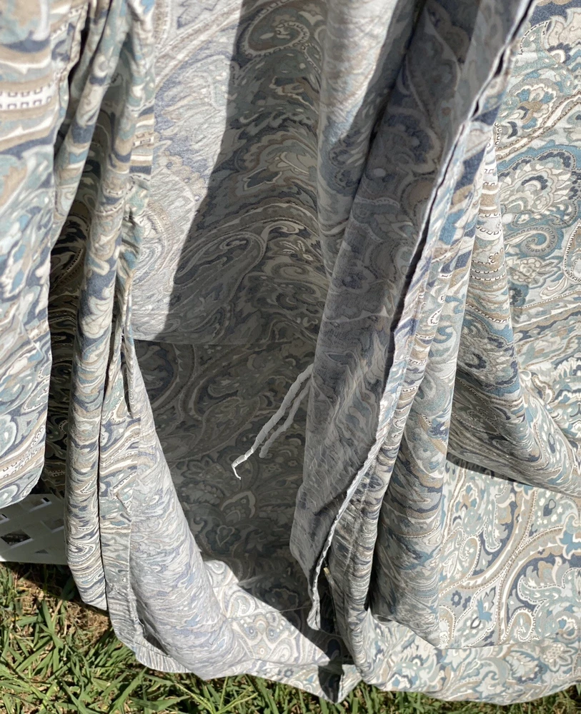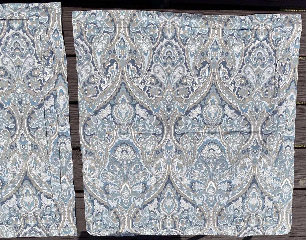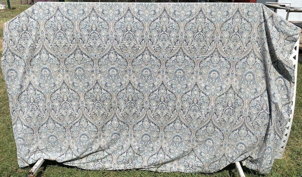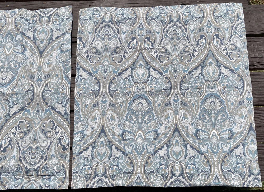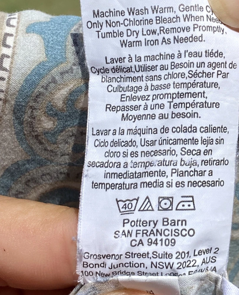 3Pc Pottery Barn King Duvet Cover + 2 Euro Pillow Shams 100% COTTON (5% organic) McKenna Blue Grey Paisley Good Condition. No rips or tears. Overall fade. Separately listed are more duvets/shams in this Mckenna pattern with less fade in Full/Queen size. For more PB,… Please visit our ebay store Earthly Home. https://www.ebay.com/str/earthlyhome The seller will choose shipping method. Shipments to PO Boxes may increase shipping costs. Please see all photos for condition. Thank you. )#@$