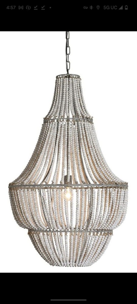 Absolutely love this chandelier! The white-washed finish and delicate beaded design add a charming, beachy vibe to my space. It was easy to install and gives off the perfect warm glow—so cozy and stylish. Looks way more expensive than it is, definitely a great buy!